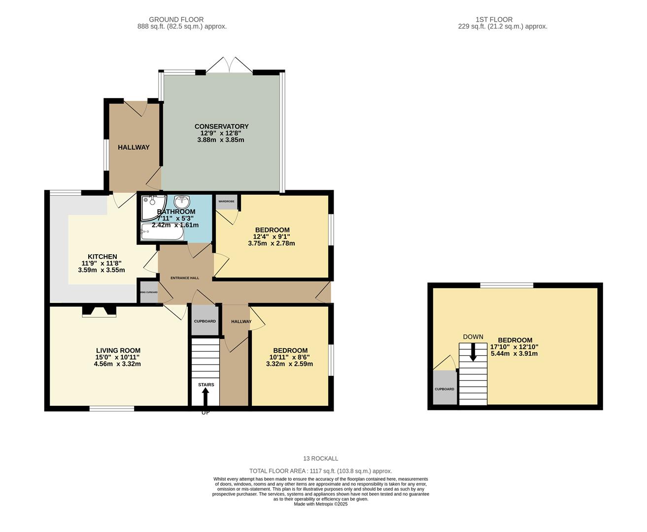 With doors leading to inner hallway, kitchen, living room, two bedrooms and bathroom. Built-in storage cupboard. Airing cupboard. Stairs leading to Bedroom 1.