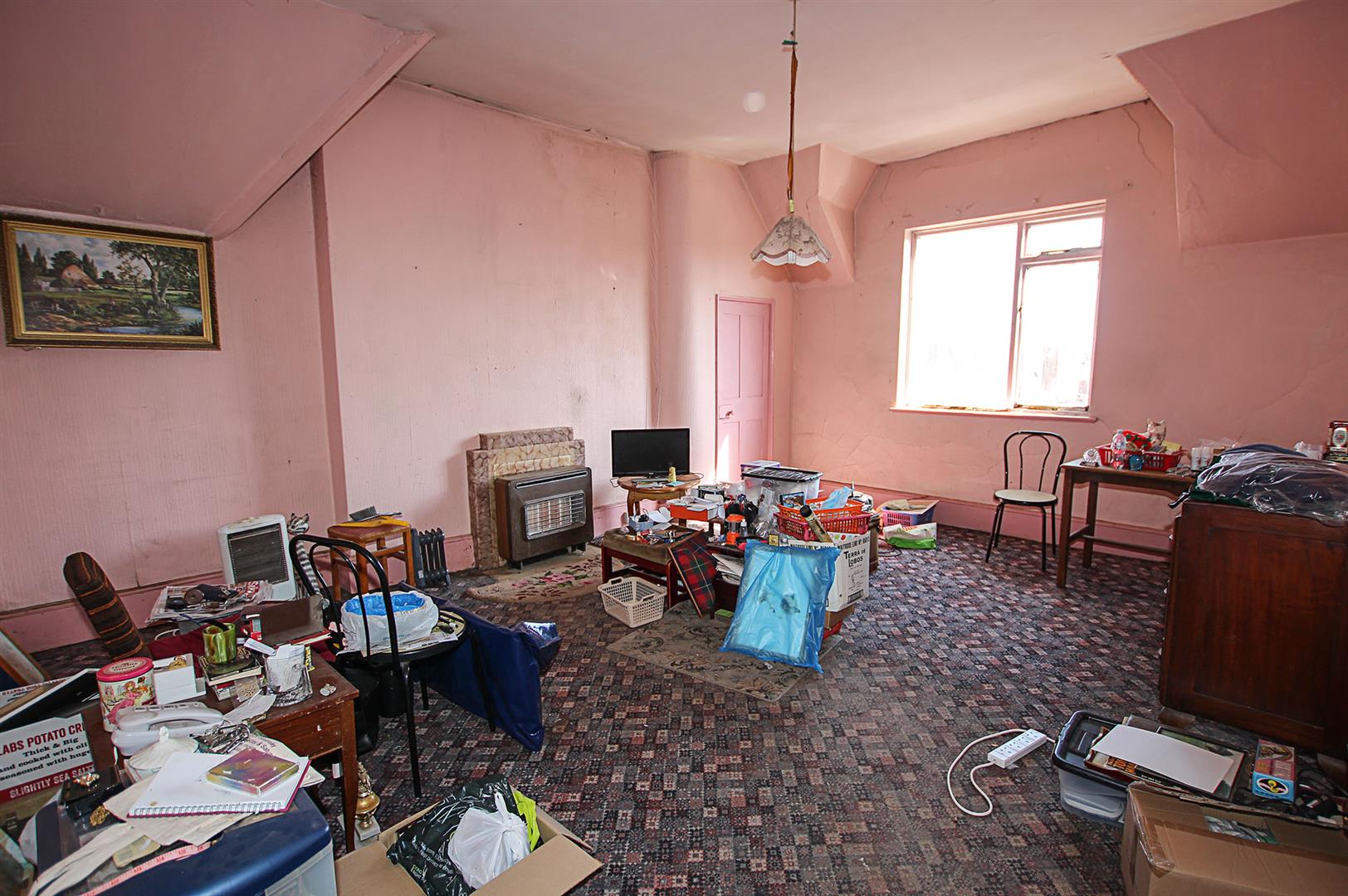 With fireplace, storage cupboard, hatch opening to kitchen, window to the side aspect, door to inner hallway.