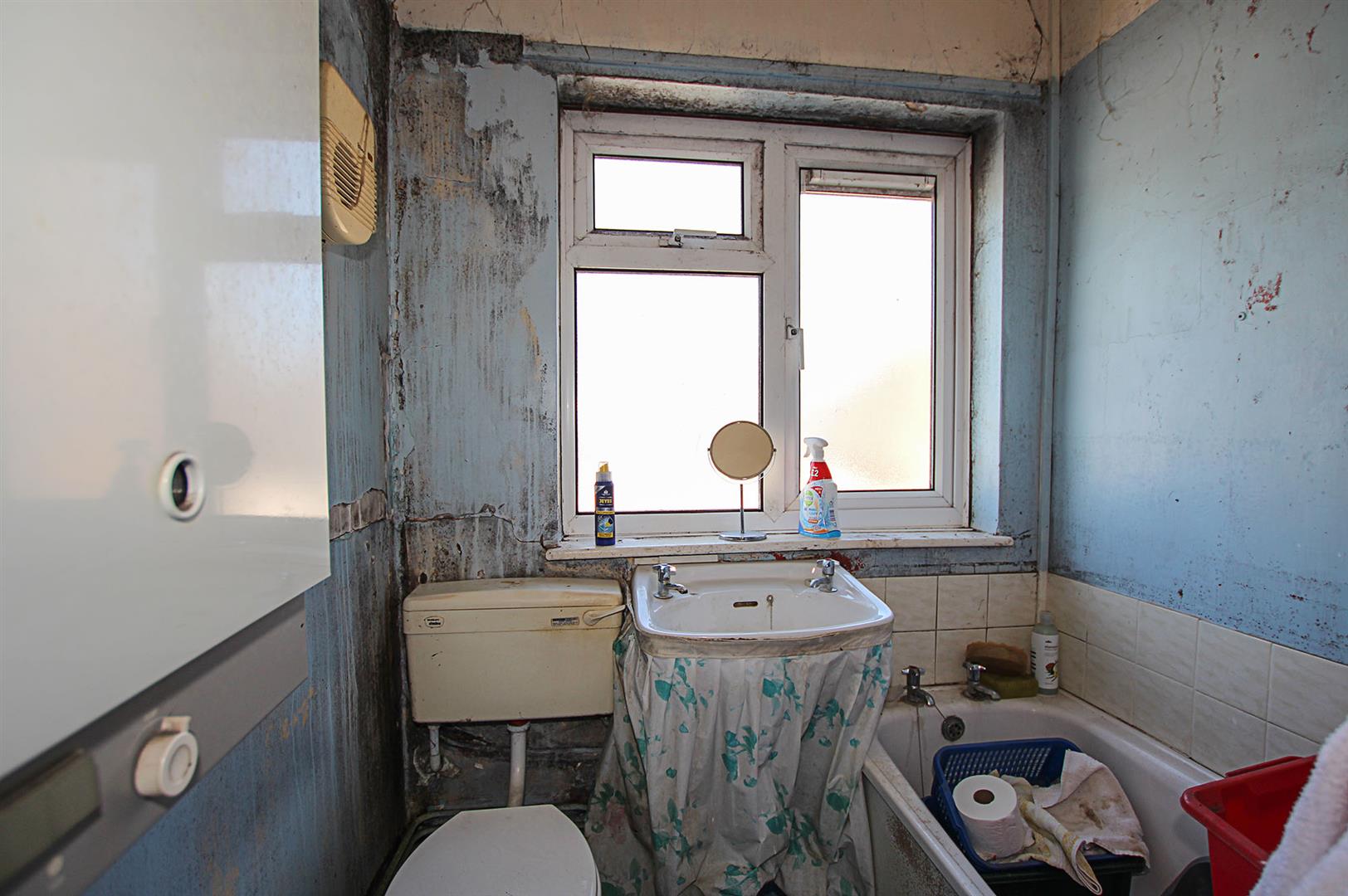 Fitted WC, hand wash basin and bath, wall mounted boiler, obscured window to the side aspect.