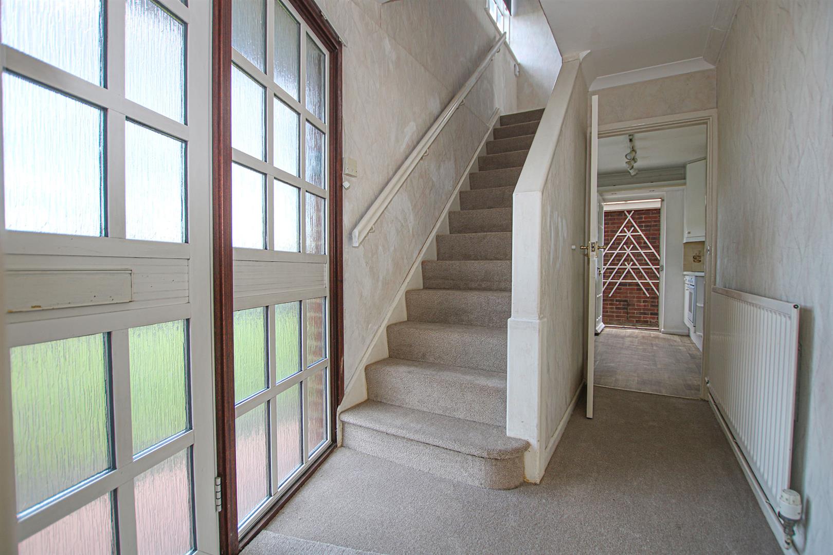 With doors leading to the kitchen, living room and cloakroom. Stairs leading to the first floor. Radiator.