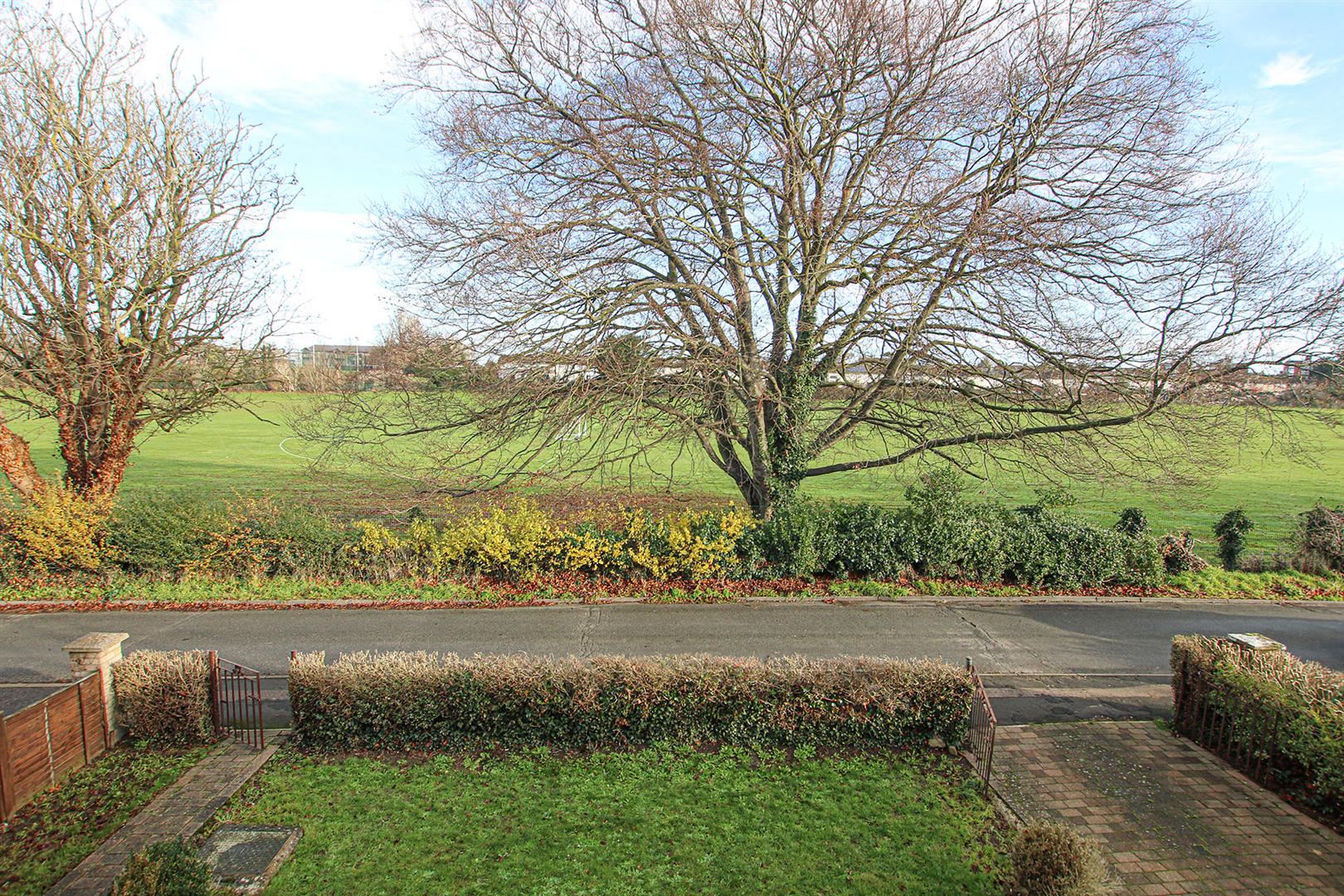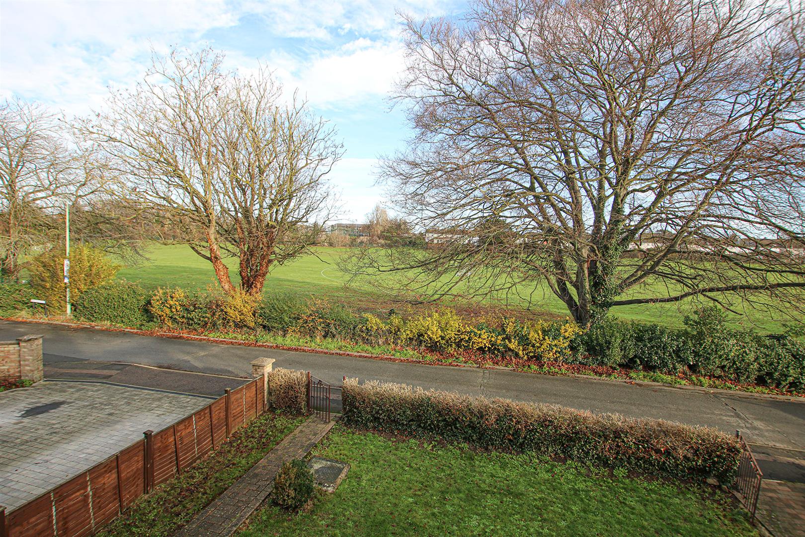 Mainly laid to lawn, some shrub planting, with a pathway leading to the front door with storm porch over. Block paved driveway leading to the garage and pedestrian door to the side porch. Views over the playing field opposite.