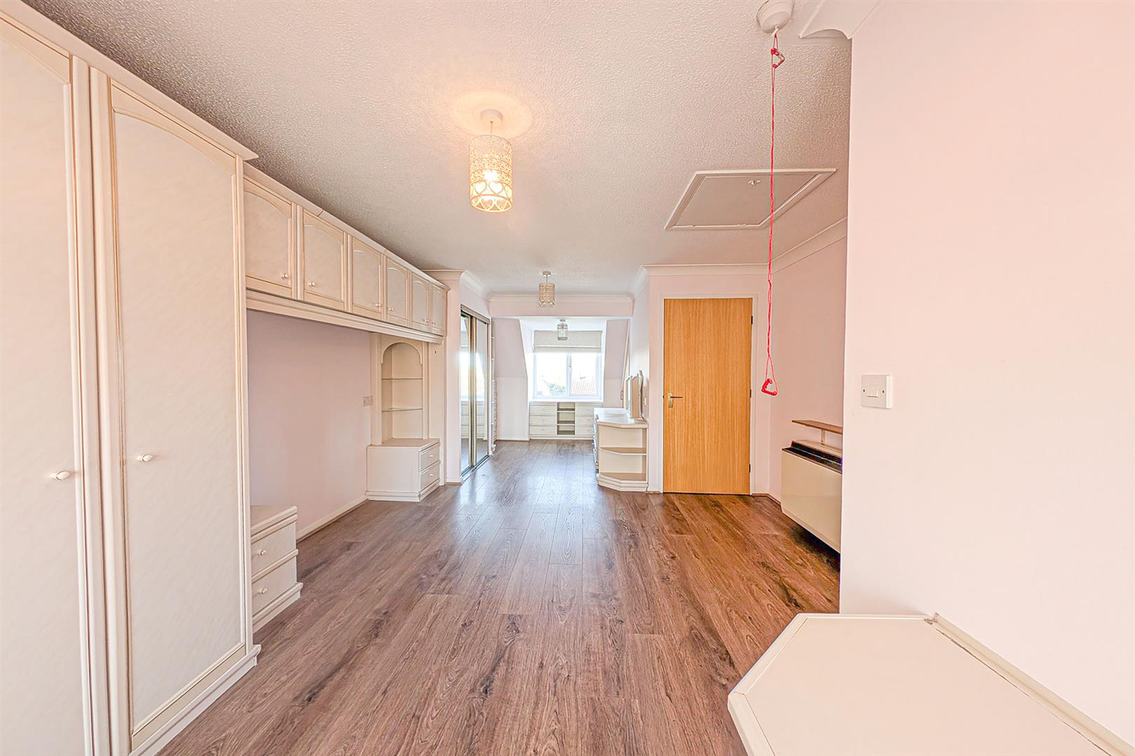 Spacious Master bedroom with built-in wardrobes and storage cupboards. Airing cupboard. Storage heater. Dual aspect windows. Access hatch to loft space. Doors leading to the en suite and landing.
