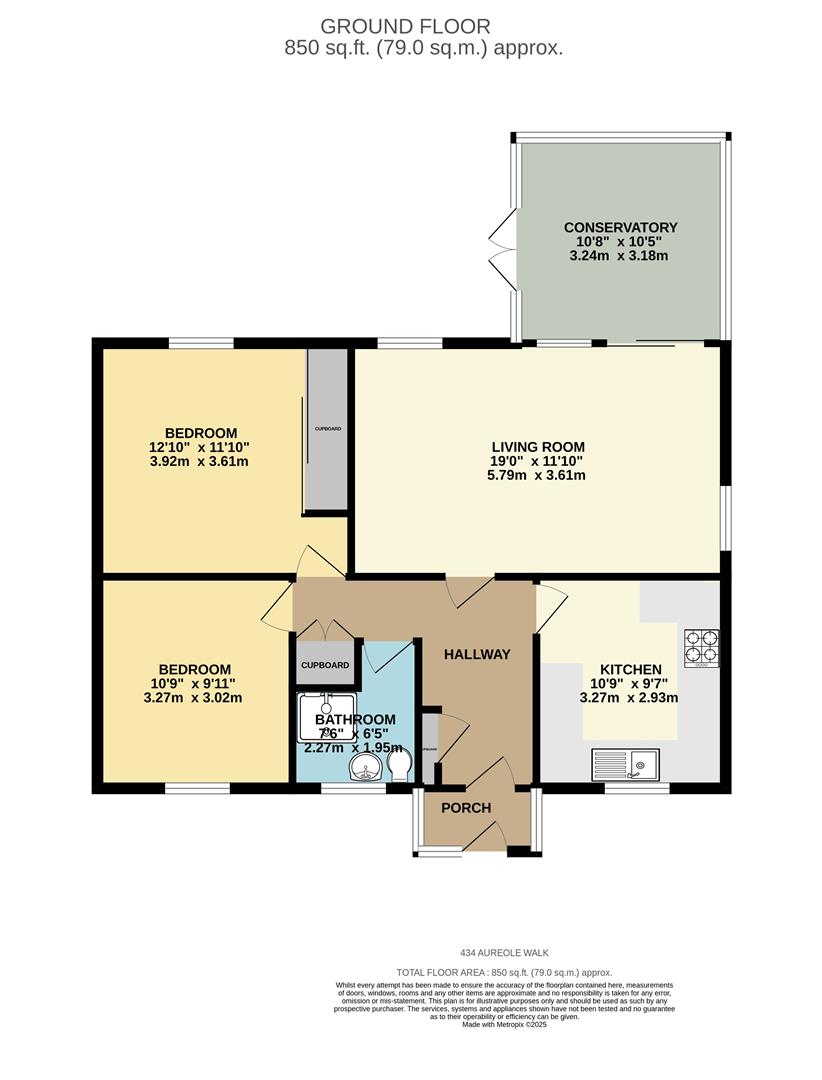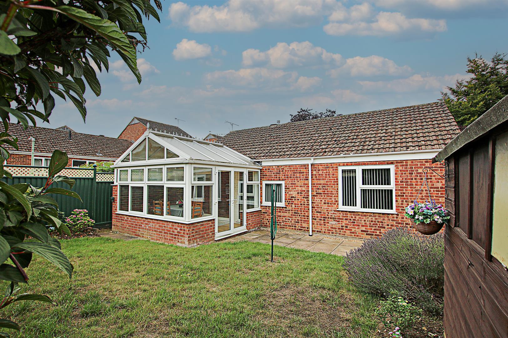 Patio area to rear of the bungalow with French doors to conservatory/dining room. Access gate and pathway leading to the front. Well maintained lawned area with planted borders. Timber shed. Outside tap.