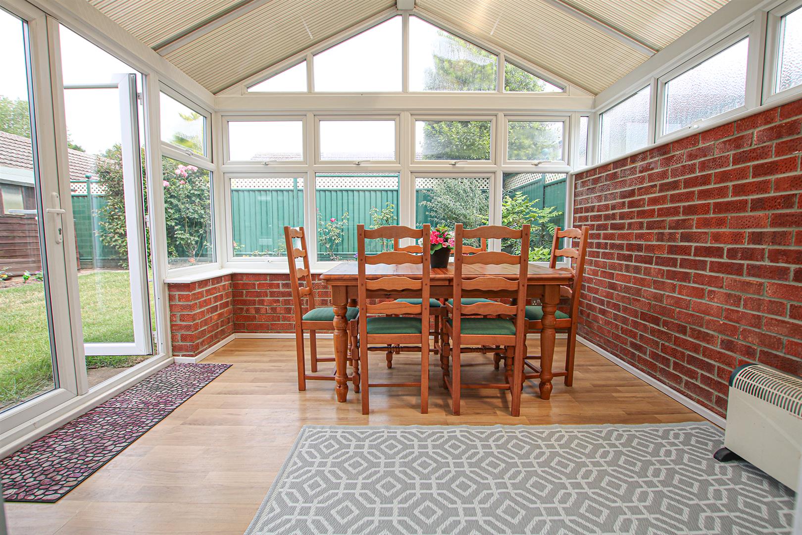 Generous conservatory/dining room with LVT wood flooring. Glazed sliding doors and full height window to sitting room. French doors to rear garden.