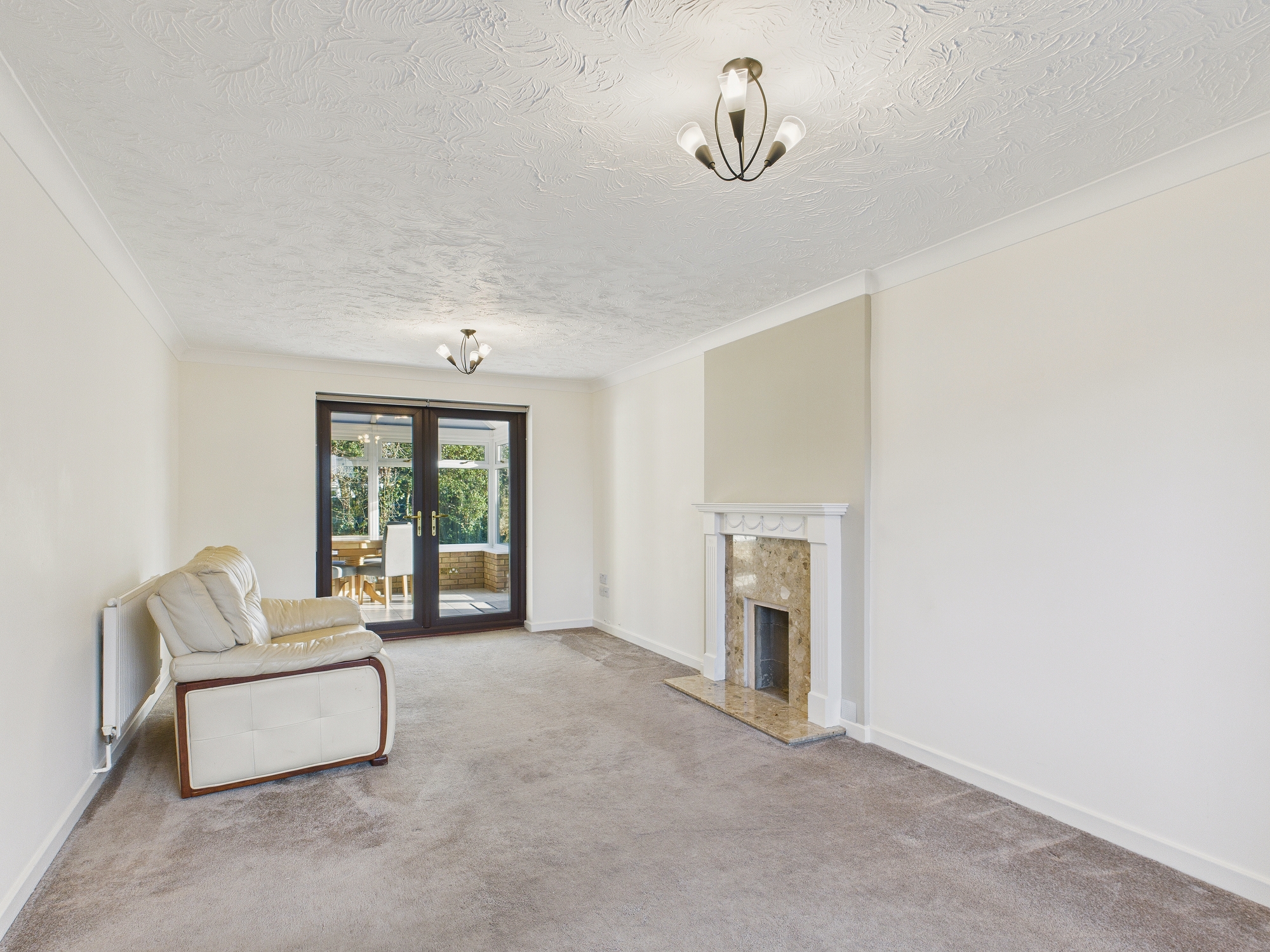 uPVC double glazed window to front, two wall mounted radiators, central fireplace with wooden surround and mantle with marble insert and hearth with electric fire, uPVC double glazed doors into conservatory, textured and coved ceiling.