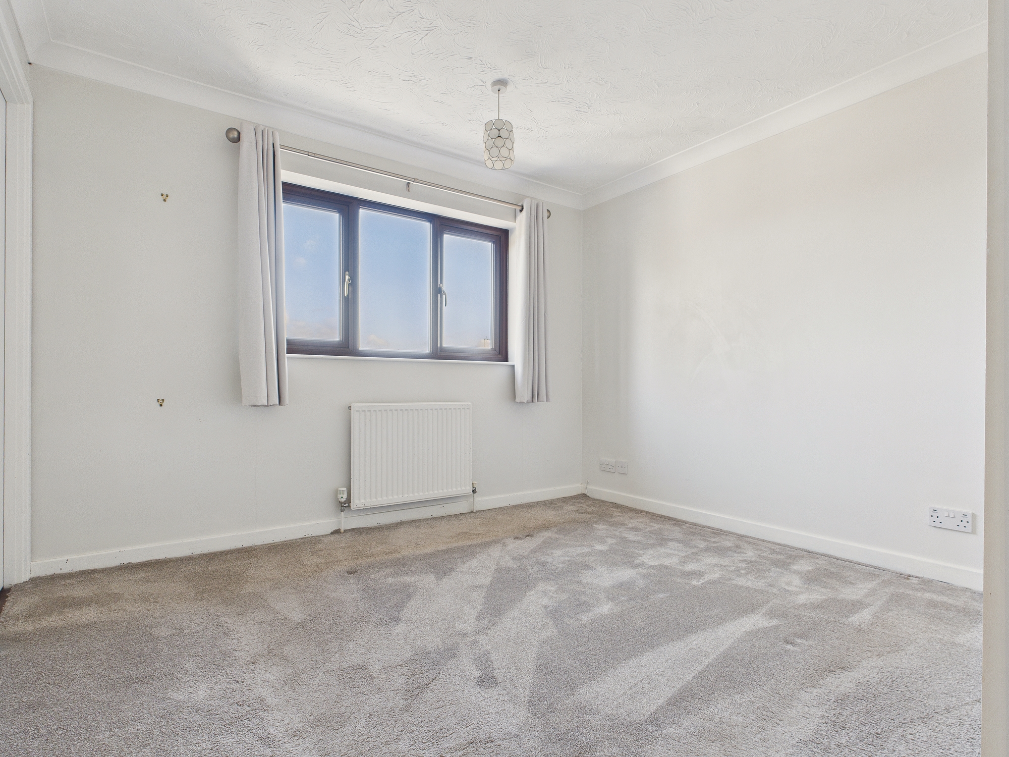 uPVC double glazed window to front, wall mounted single panel radiator, textured and coved ceiling, door to built-in wardrobe, laminate style flooring.