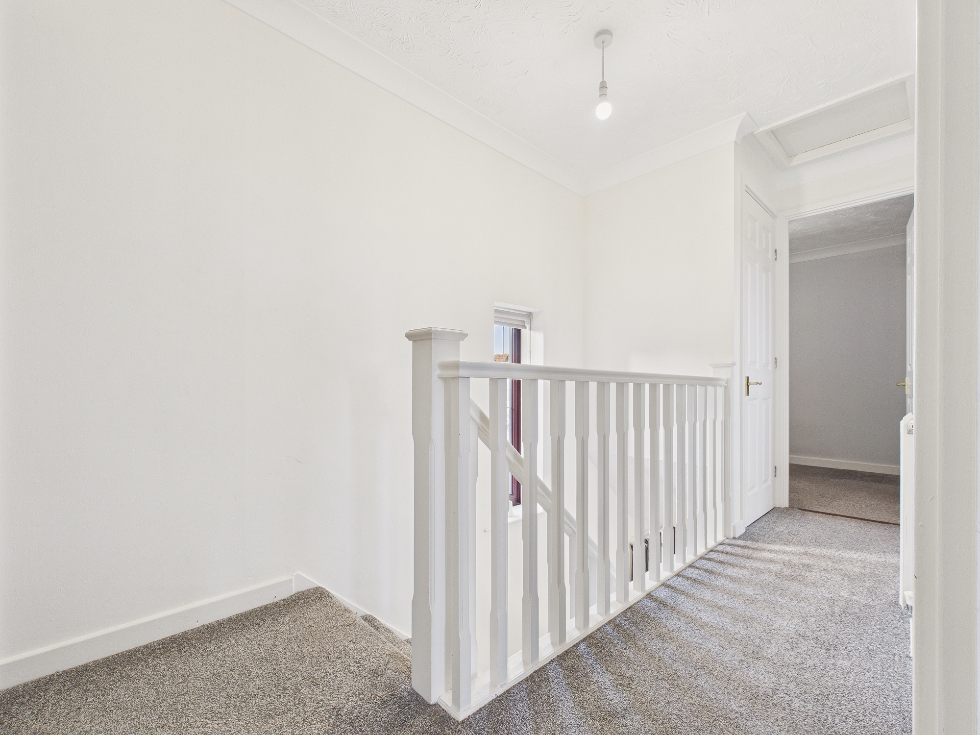 uPVC double glazed window to front, wall mounted single panel radiator, loft access, door to airing cupboard housing hot water cylinder and shelving, textured and coved ceiling, doors to all rooms.