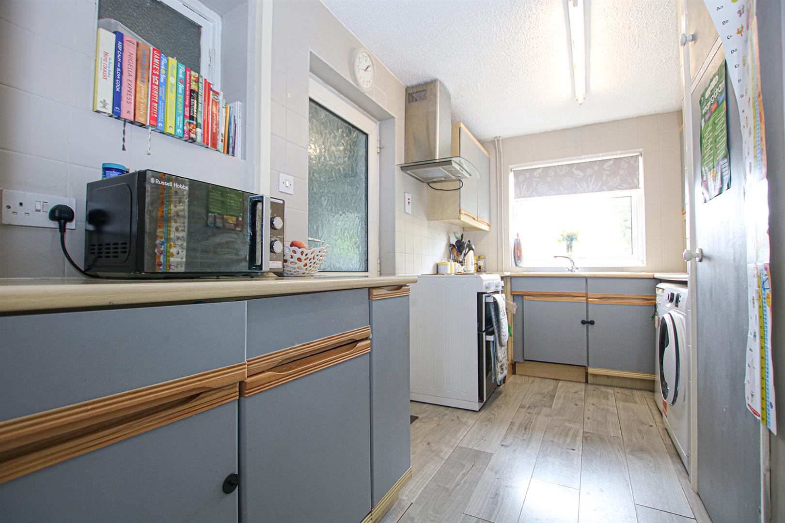 Fitted with a range of matching eye and base level cupboards with worktop over. Stainless steel sink and drainer with mixer tap over. Space and connection for electric cooker with stainless steel extractor above. Space and plumbing for washing machine. Space for fridge. Window to the rear aspect. Wood effect laminate flooring. Electric storage heater. Half glazed door to rear lobby. Door to entrance hall.