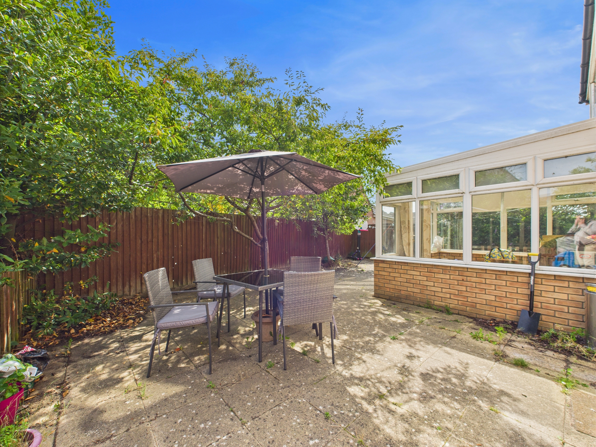 The rear garden is mainly laid to lawn with mature trees and shrubs along with a patio area. To the front there is a brick weave driveway leading to the garage.