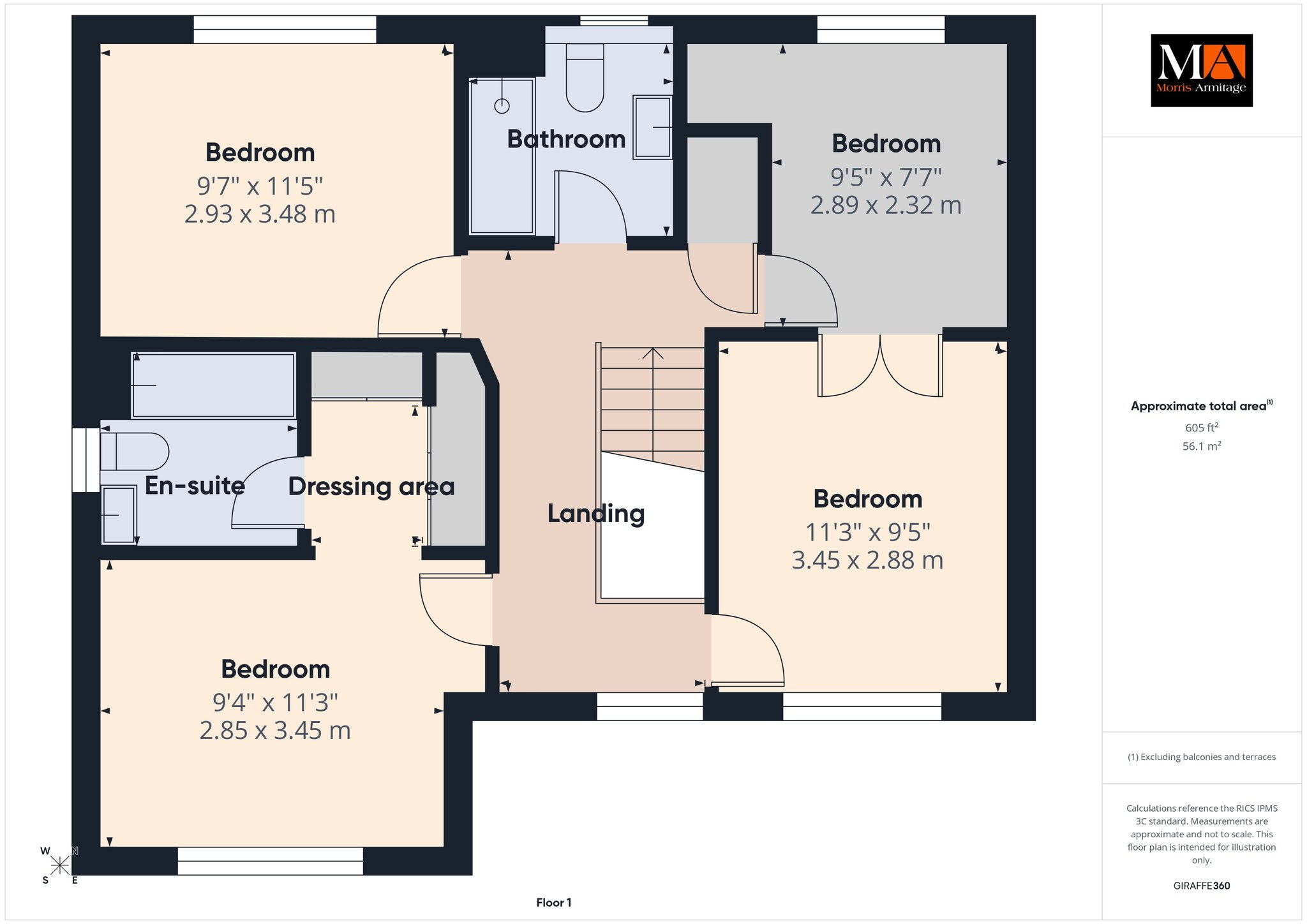 Bedroom Three 11’3” x 9’5” (3.45m x 2.88m)