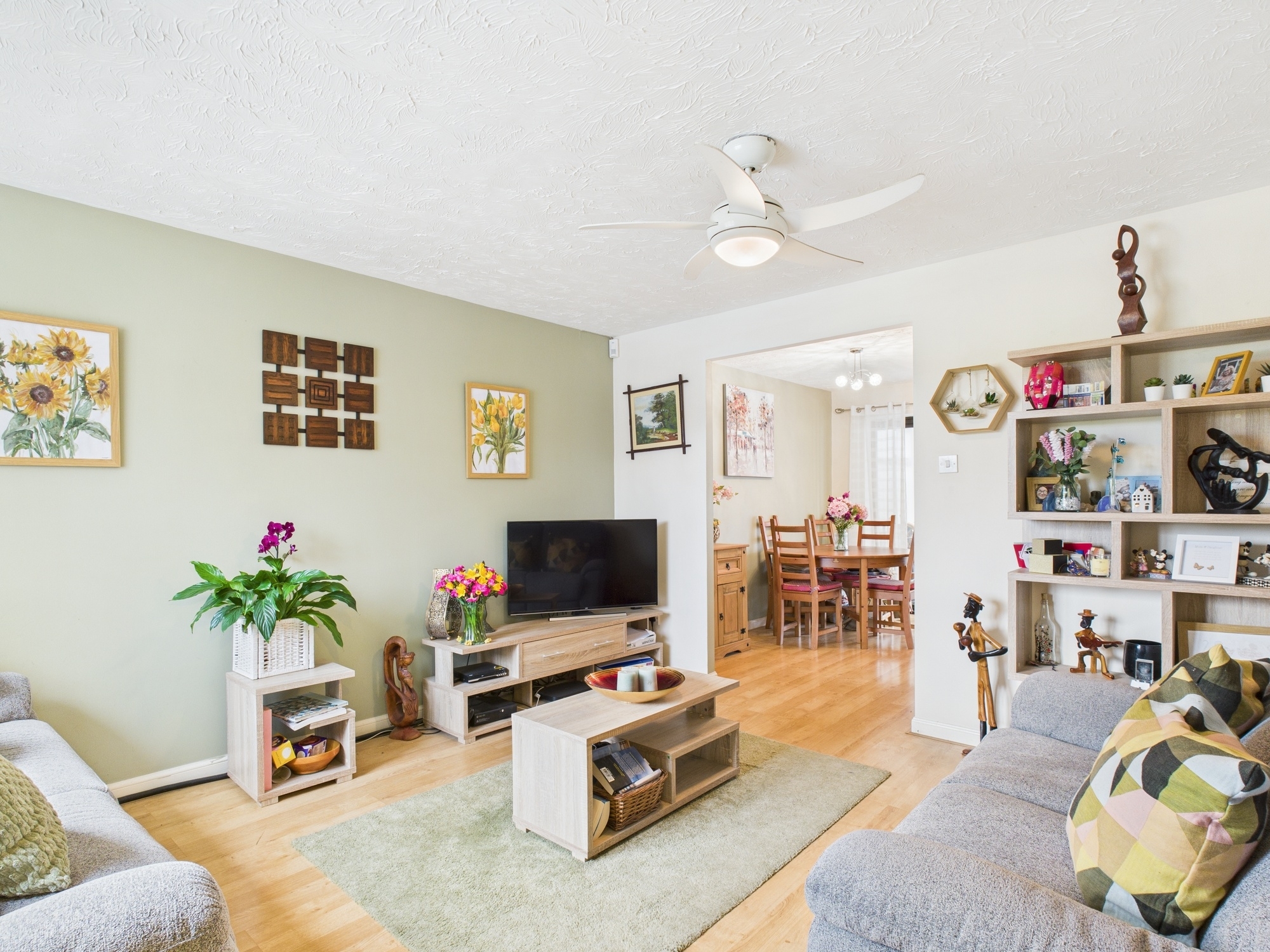 uPVC double glazed window to front, wall mounted double panel radiator, textured ceiling with central fan, laminate style flooring, opening through to:-
