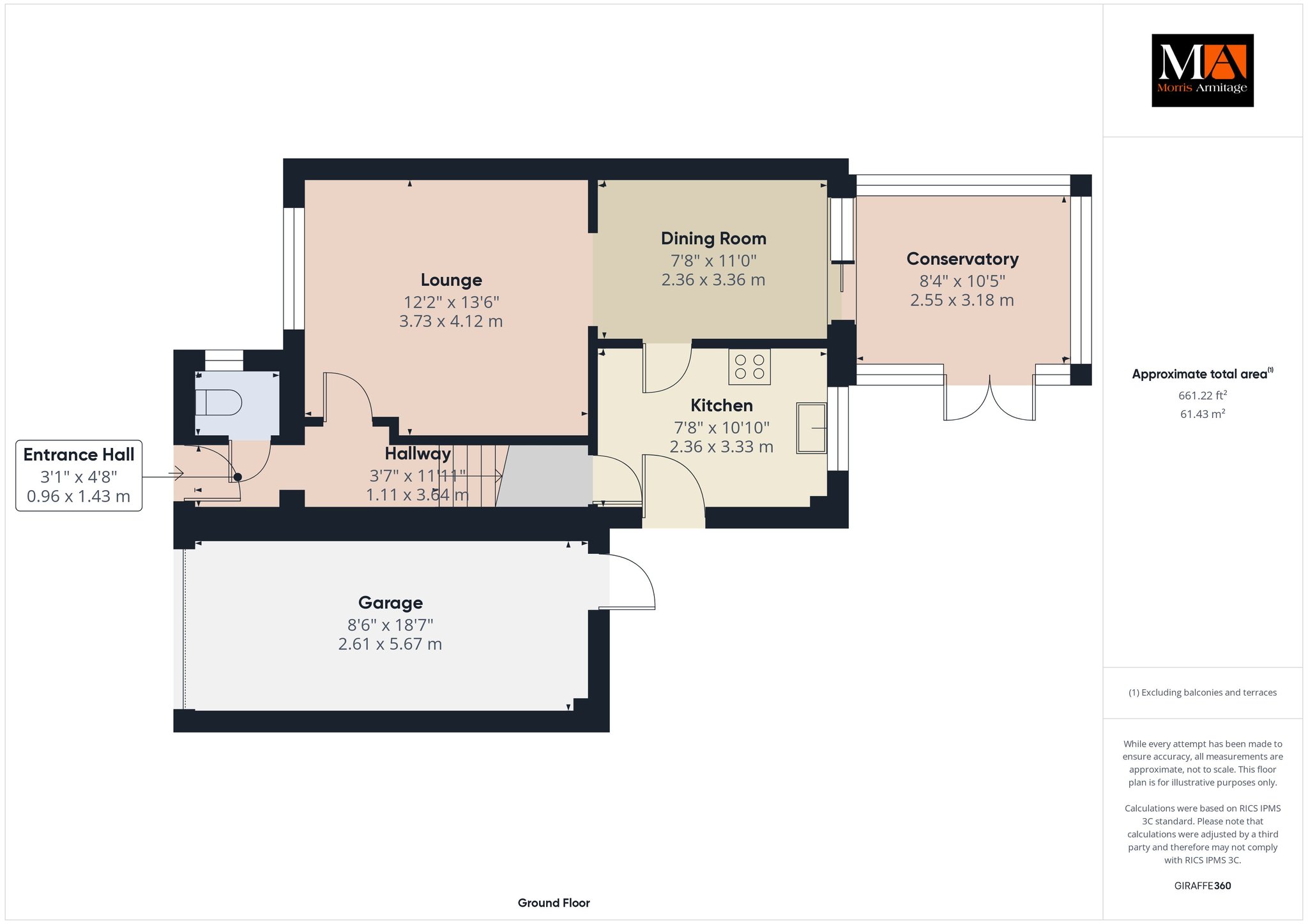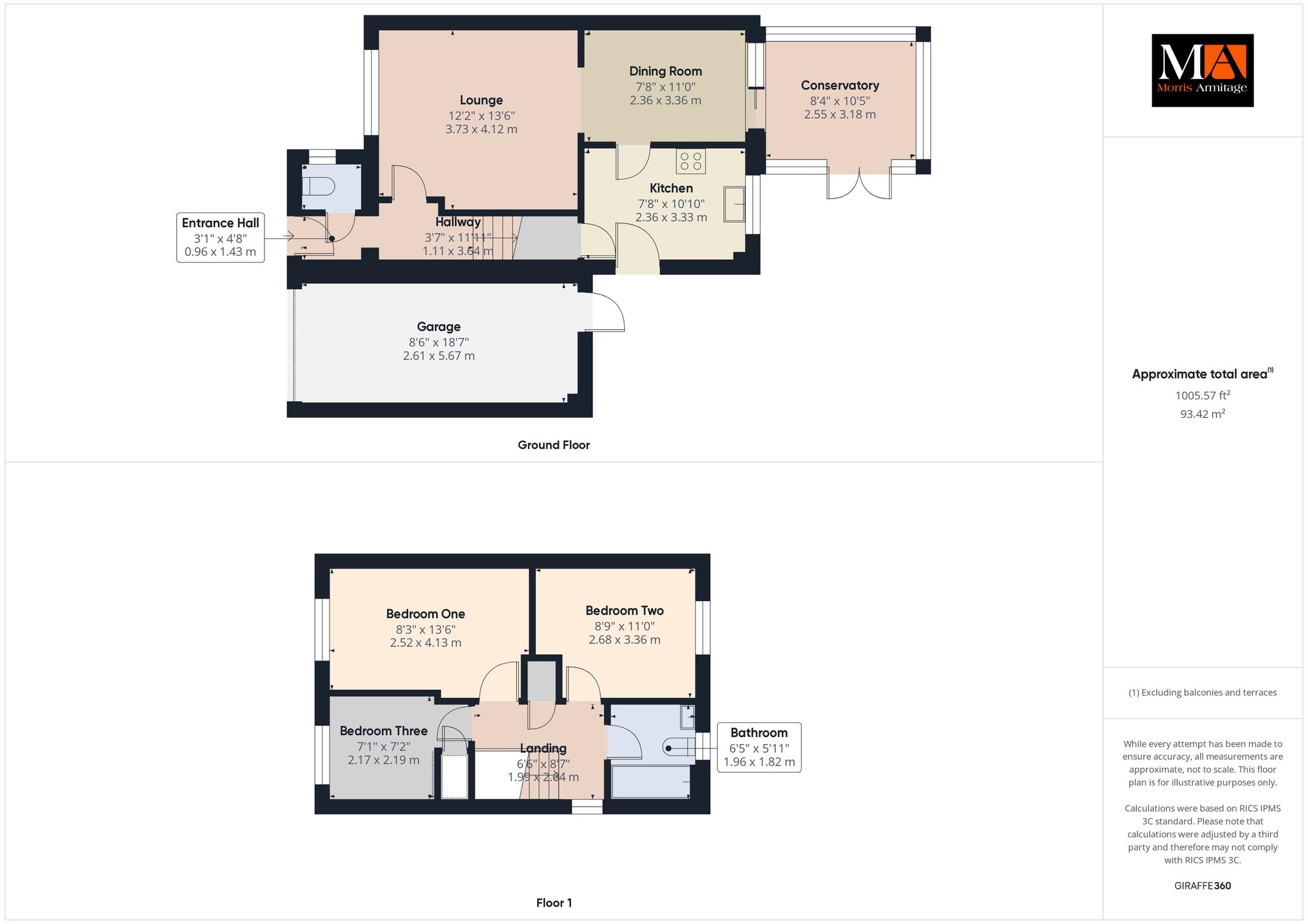 Conservatory 10’5” x 8’4” (3.18m x 2.55m)