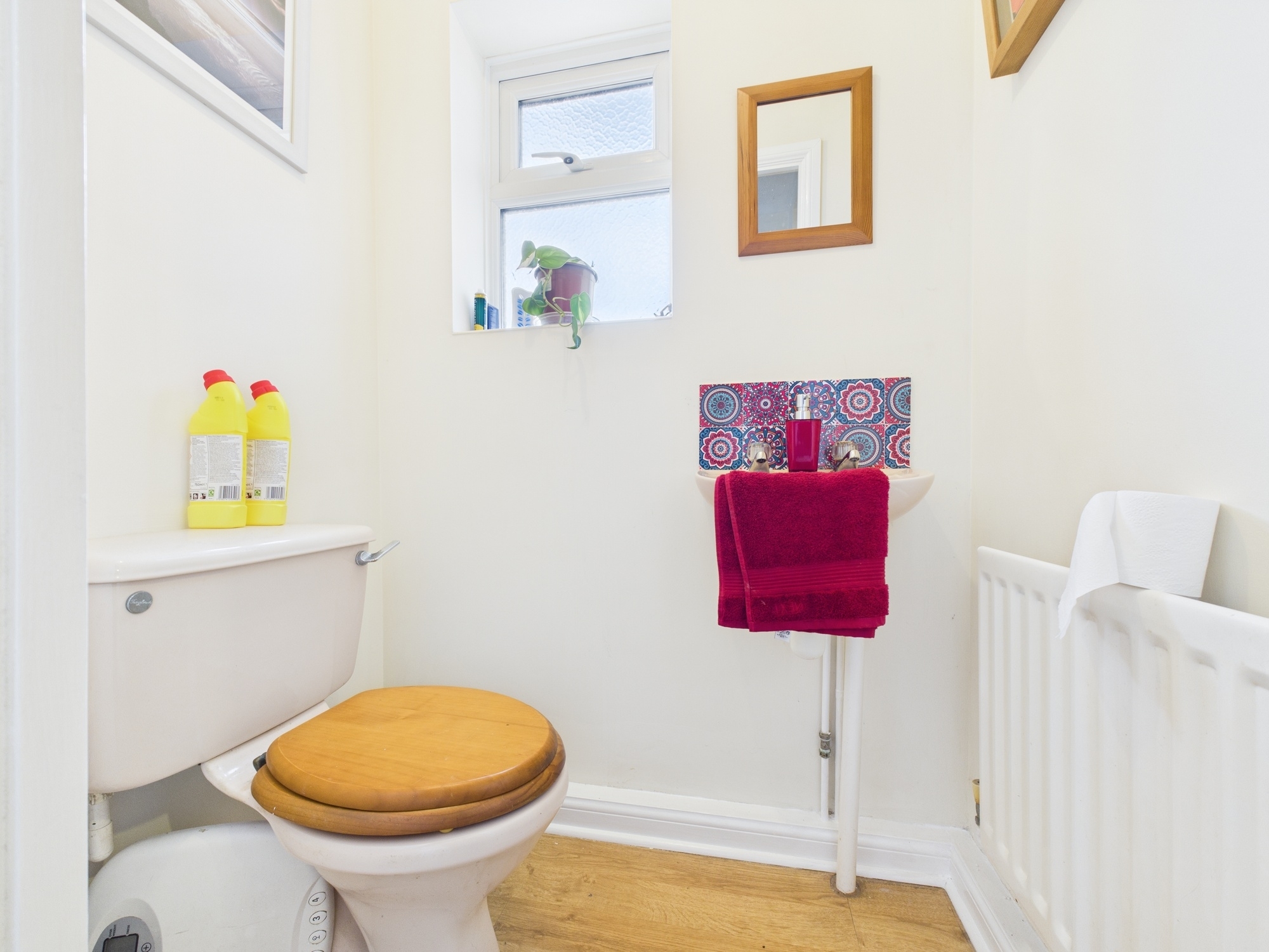 uPVC double glazed window to front, wall mounted single panel radiator, w.c., handwash basin, laminate style flooring, textured ceiling.