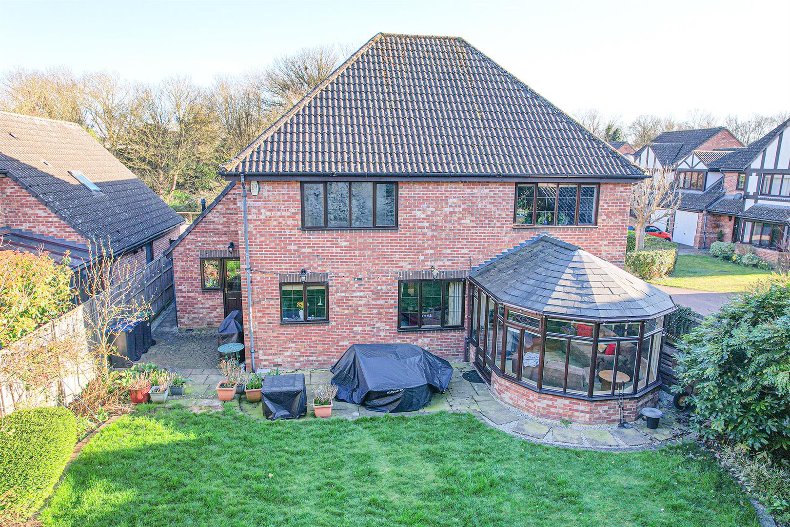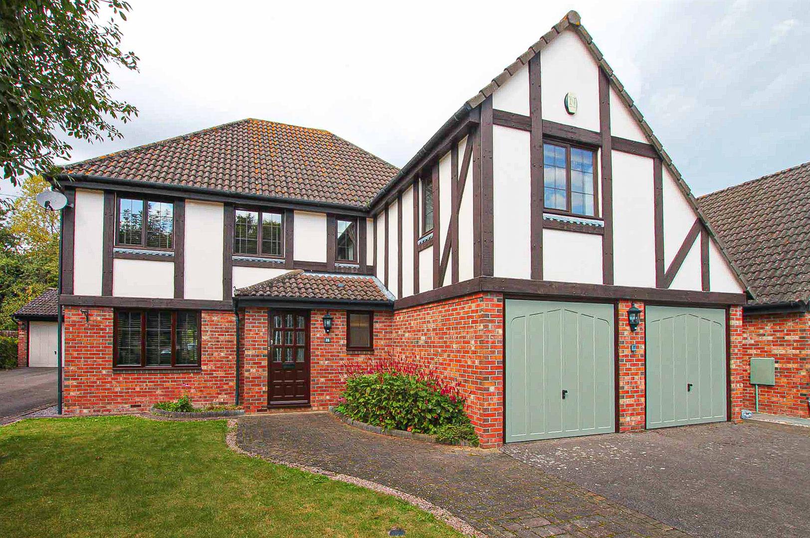 Lawned area with block paved pathway leading to the front porch. Hardstanding driveway leading to the double garage, providing ample off road parking. Attractive shrub planted beds.