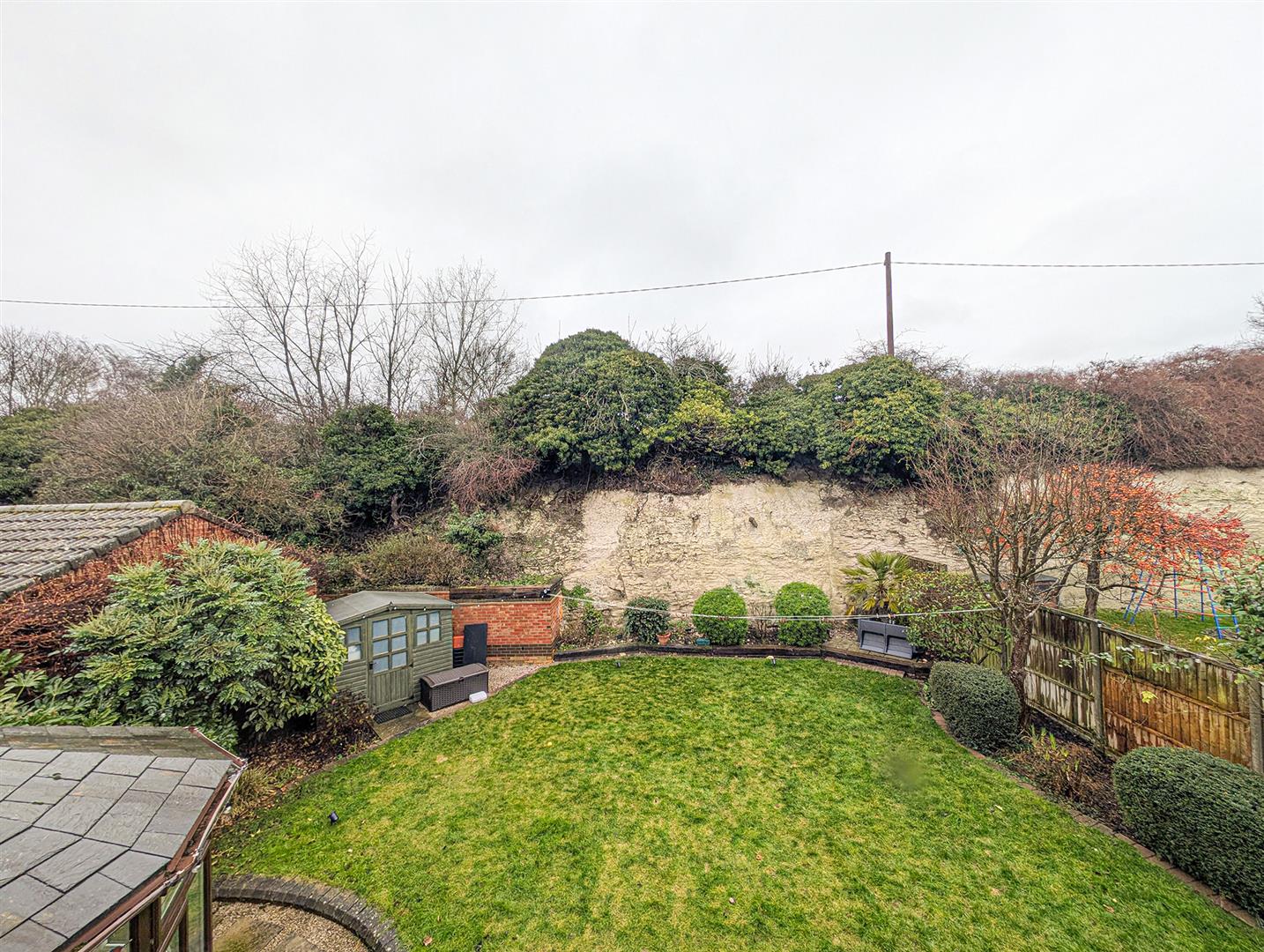 Charming garden, mainly laid to lawn with patio area to the rear of the house with French doors leading to the conservatory and door leading to the utility room. Charming clunch wall to the rear boundary with planted border beds, containing a huge variety of established shrub and small tree planting. Timber shed.