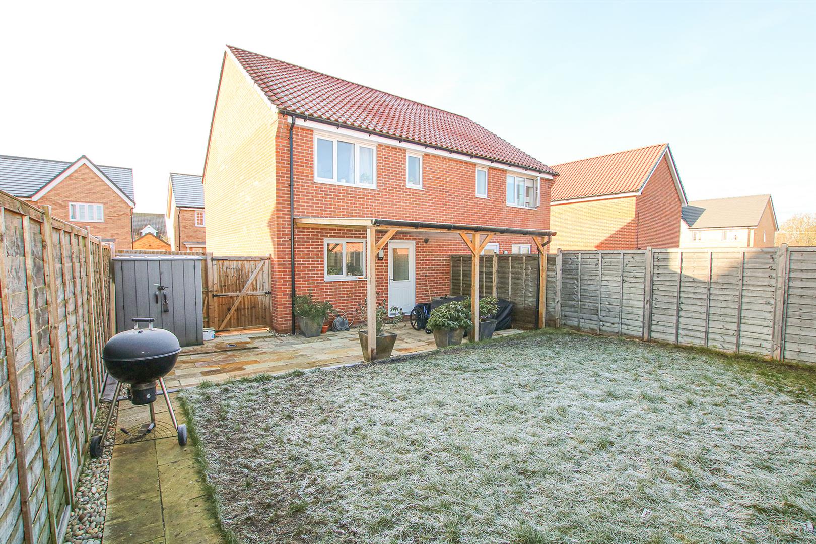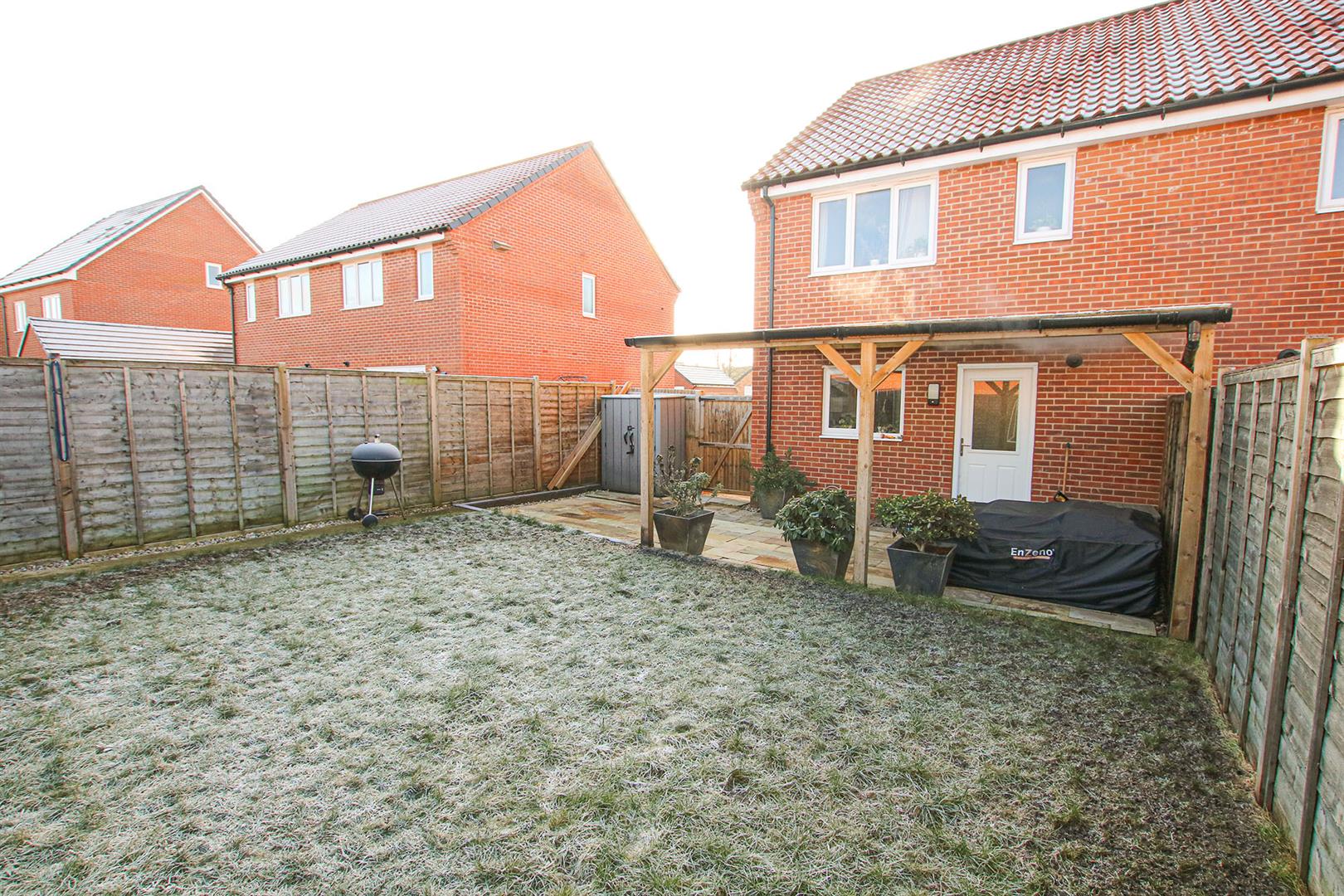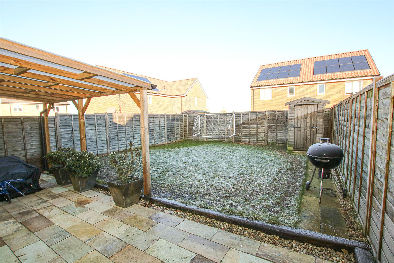 Spacious, enclosed family garden, mainly laid to lawn with sand stone patio area to rear of house with pergola over. Access gate leading to front driveway.