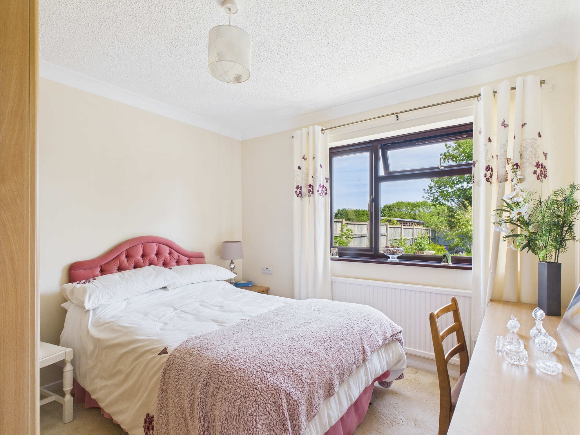 uPVC double glazed window to rear, wall mounted single panel radiator, textured and coved ceiling, built in wardrobes, storage and dressing table.