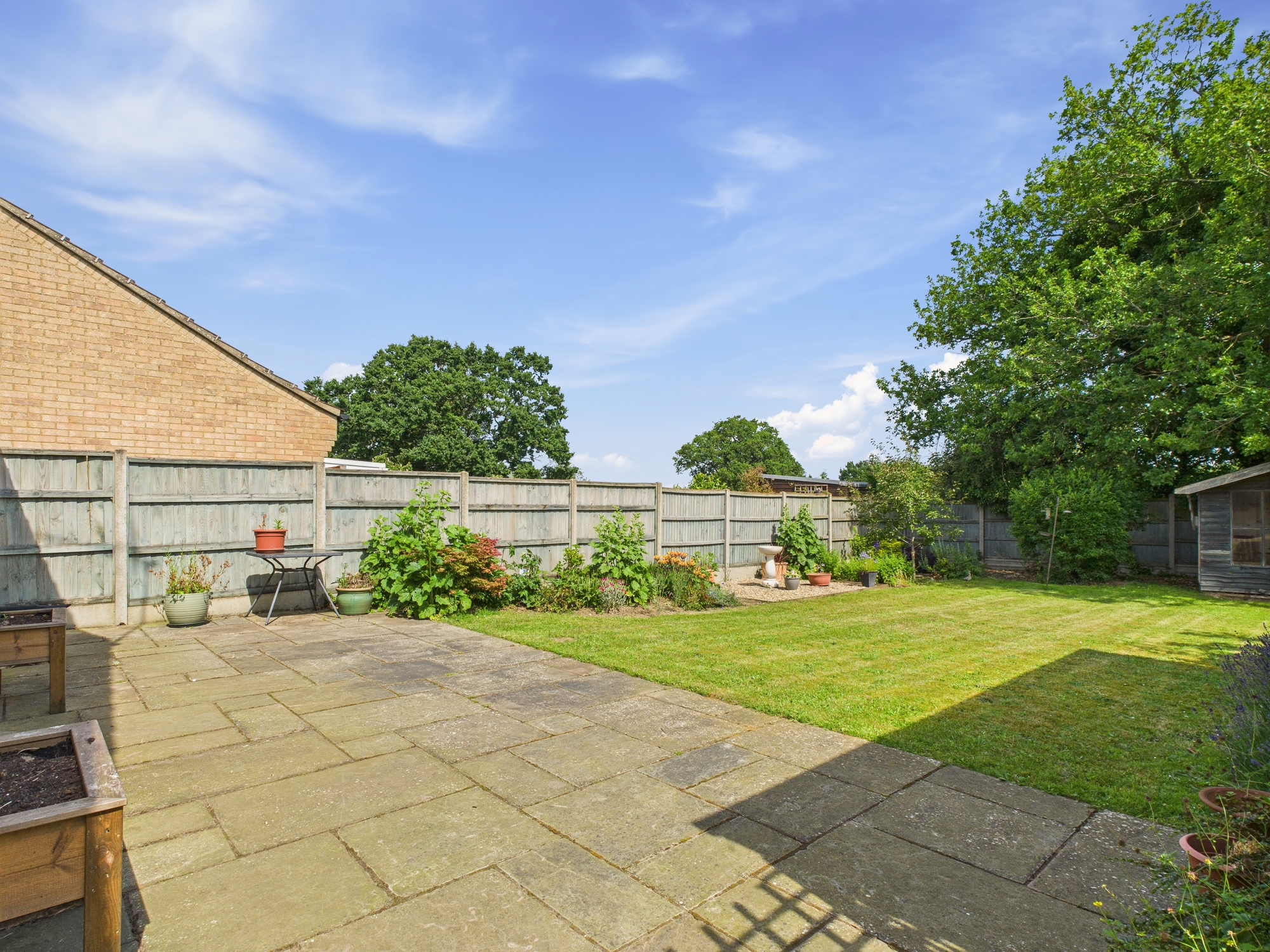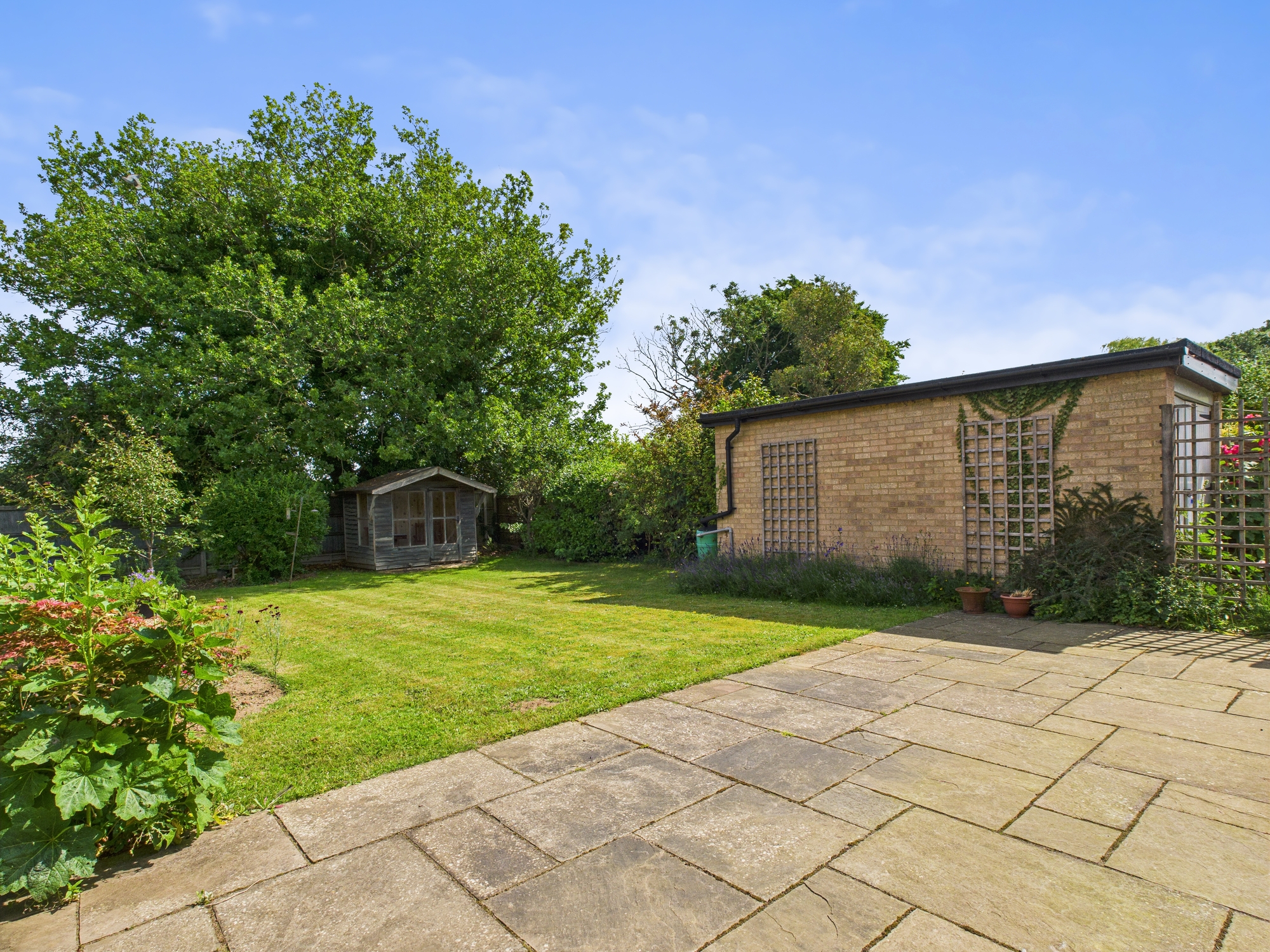 The front of the property is laid to lawn with bushes and shrubs inset and to borders with a path leading to the front entrance door. The concrete driveway to the side provides off road parking and leads to the garage. The rear garden is also mainly laid to lawn, very private with shrubs and flowers to borders. There is also a patio and wooden summerhouse inset.