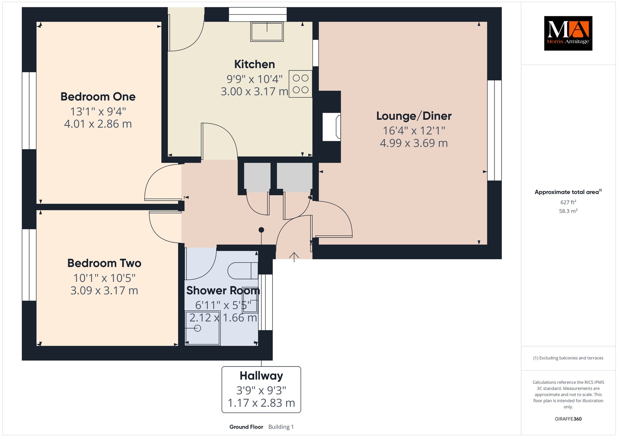 Kitchen 10’4” x 9’9” (3.17m x 3.00m)