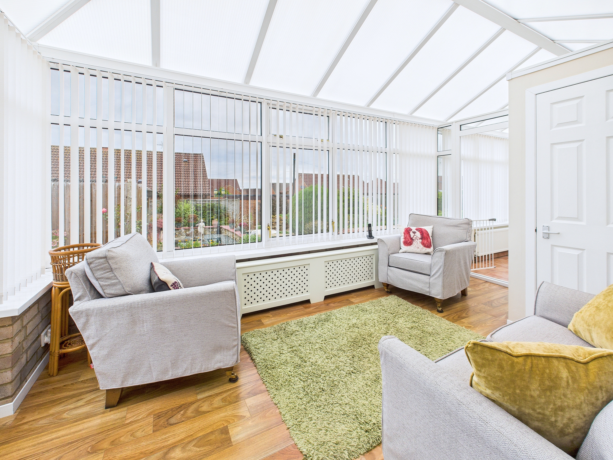 Brick base construction with uPVC double glazed windows and doors, 2 x wall mounted radiator, door to:-