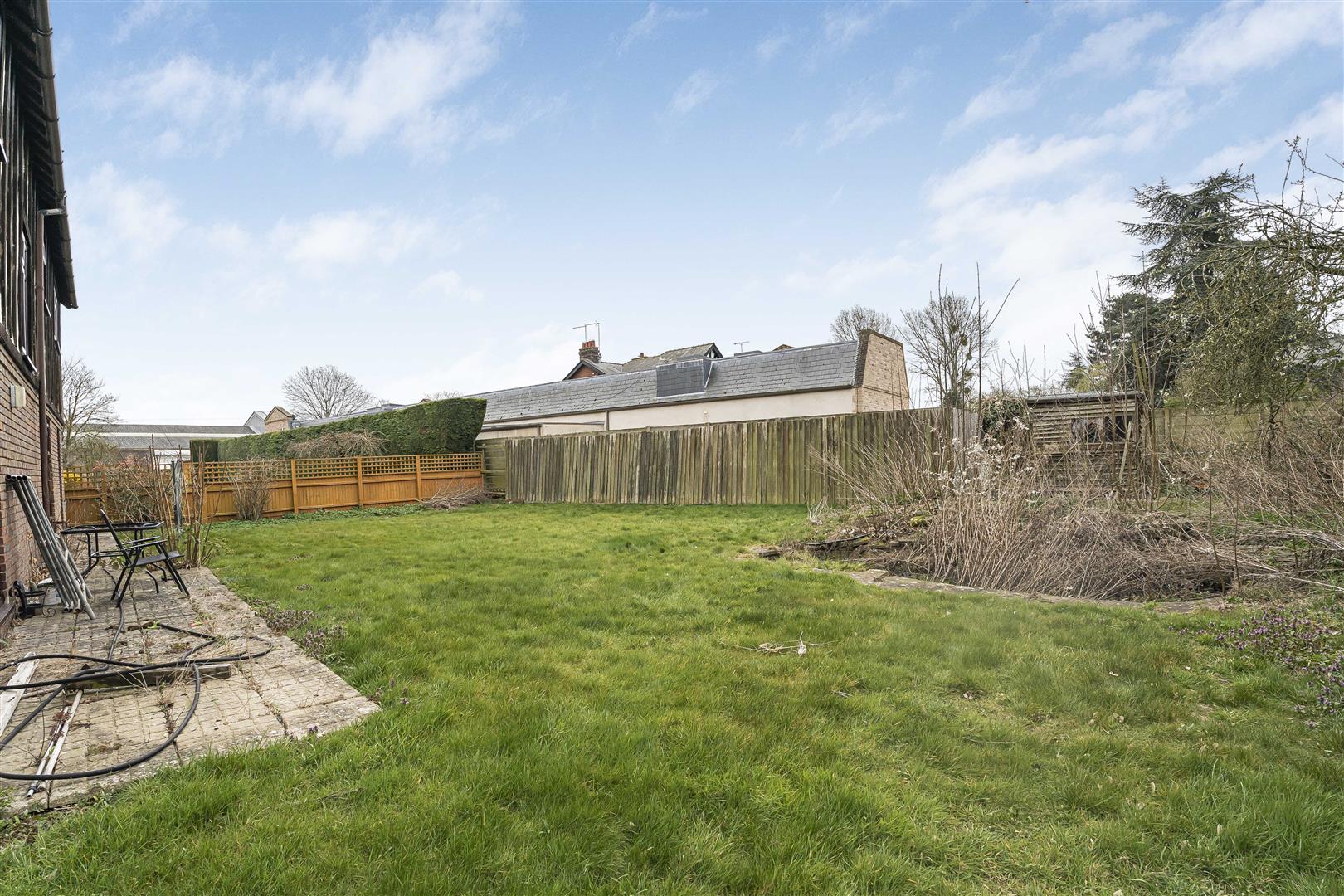 Enclosed rear garden mainly laid to lawn with some mature shrub planting. Patio area to rear of house. Access gate to front drive.