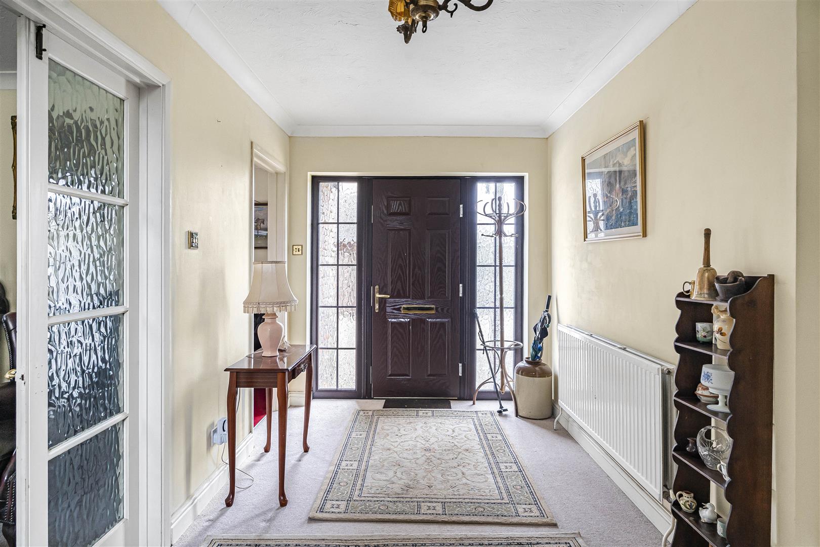 Light, generous entrance hall with doors leading to kitchen, dining room, living room, study and cloakroom. Radiator. Stairs to first floor.