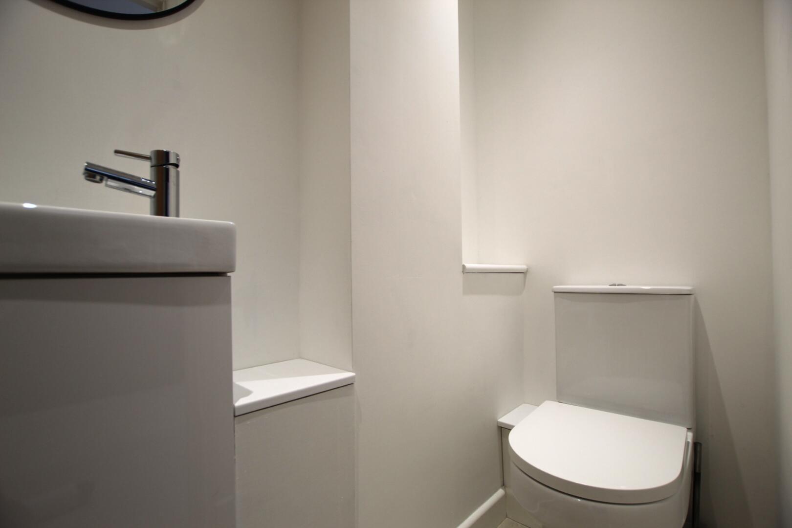The ground floor features an enclosed living room leading through to a large open-plan dining area and kitchen. The kitchen is modern and well-equipped, complete with built-in appliances including a washing machine, dishwasher and fridge freezer. A convenient downstairs WC is also located just off the kitchen.