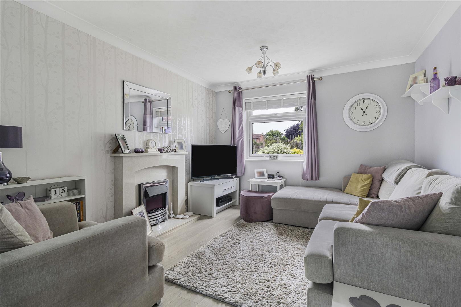 Well presented, spacious living/dining room with LVT wood flooring throughout. Feature fireplace with stone surround, mantel and hearth. Radiator. Window to front aspect. Sliding glazed doors to conservatory. Door to entrance hall.