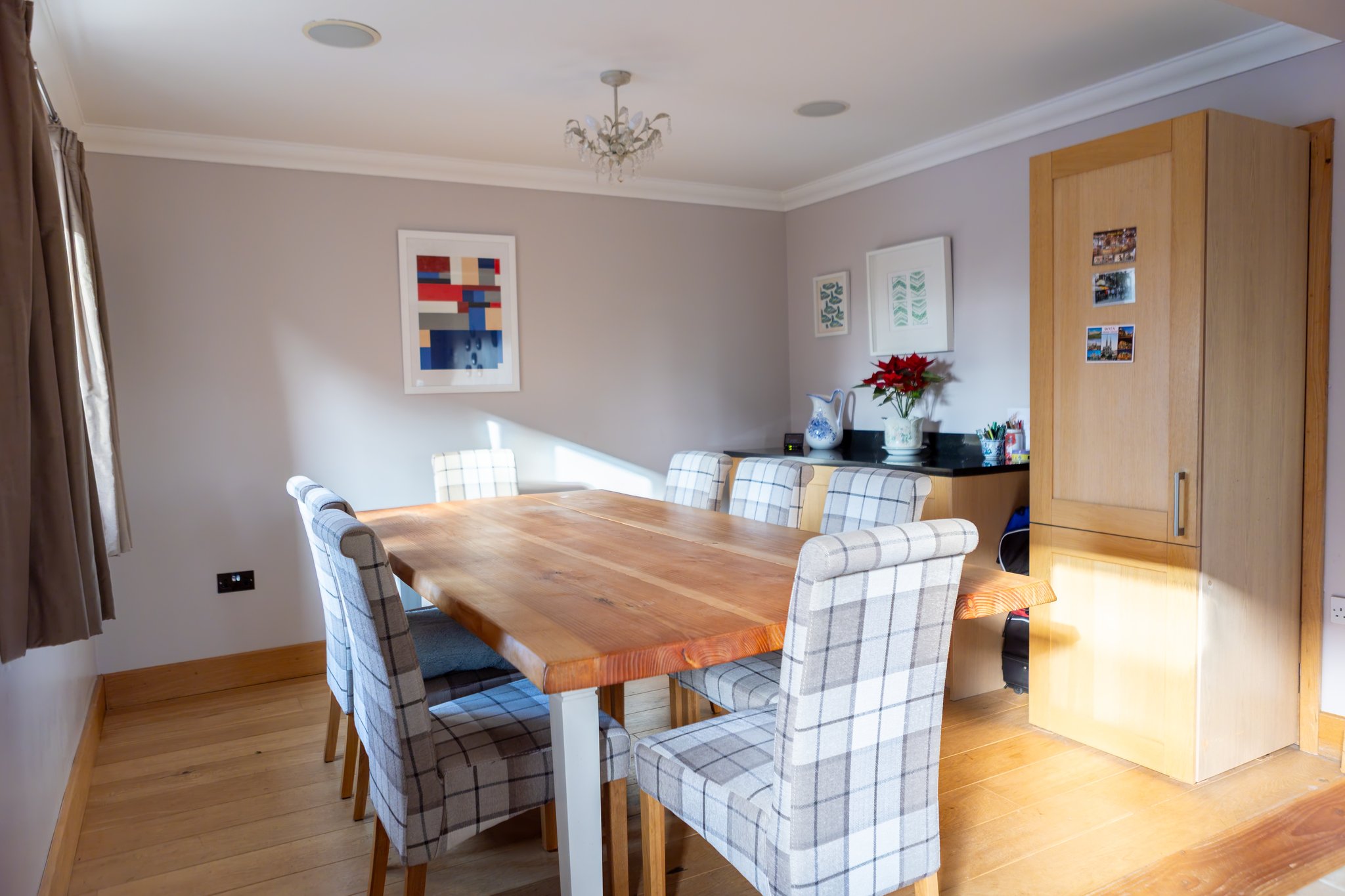 Quarry tiled air source under floor heating, solid oak stairs to first floor, coved ceiling with spotlights inset, oak door to bathroom, alcove with coat and shoes area (oak door to dining area if required), oak door to kitchen/diner, part glazed oak double doors to lounge, hallway continues with solid oak doors to all rooms.