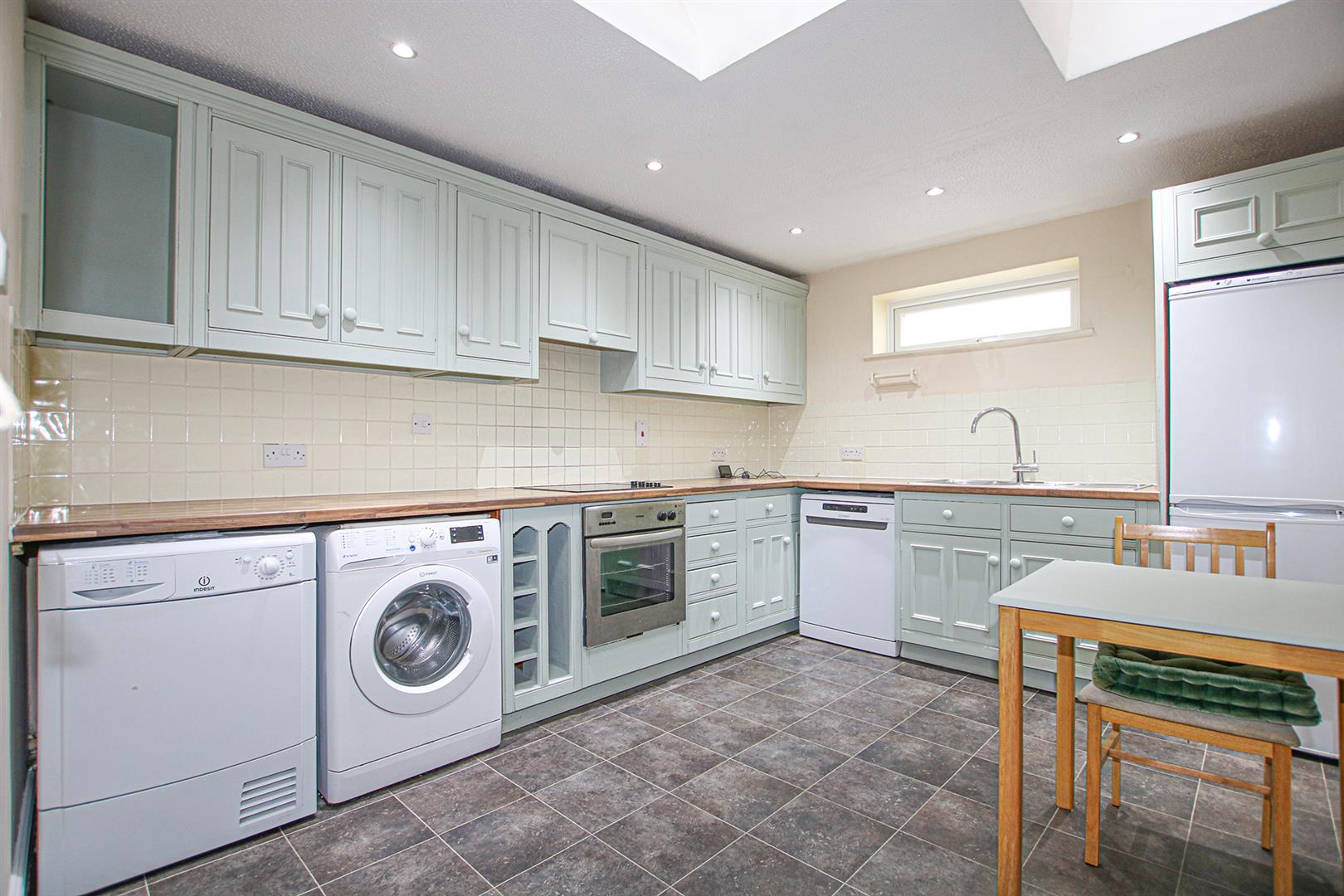 Modern fitted kitchen with a range of matching eye and base level cupboards with worktop over. Stainless steel 1 1/3 bowl sink and drainer with a mixer tap over. Integrated oven with inset electric hob and extractor over. Space for fridge/freezer. Space and plumbing for washing machine and dishwasher. Tile effect vinyl flooring. High window. Dual ceiling light well windows. Radiator. Door leading to the hallway.