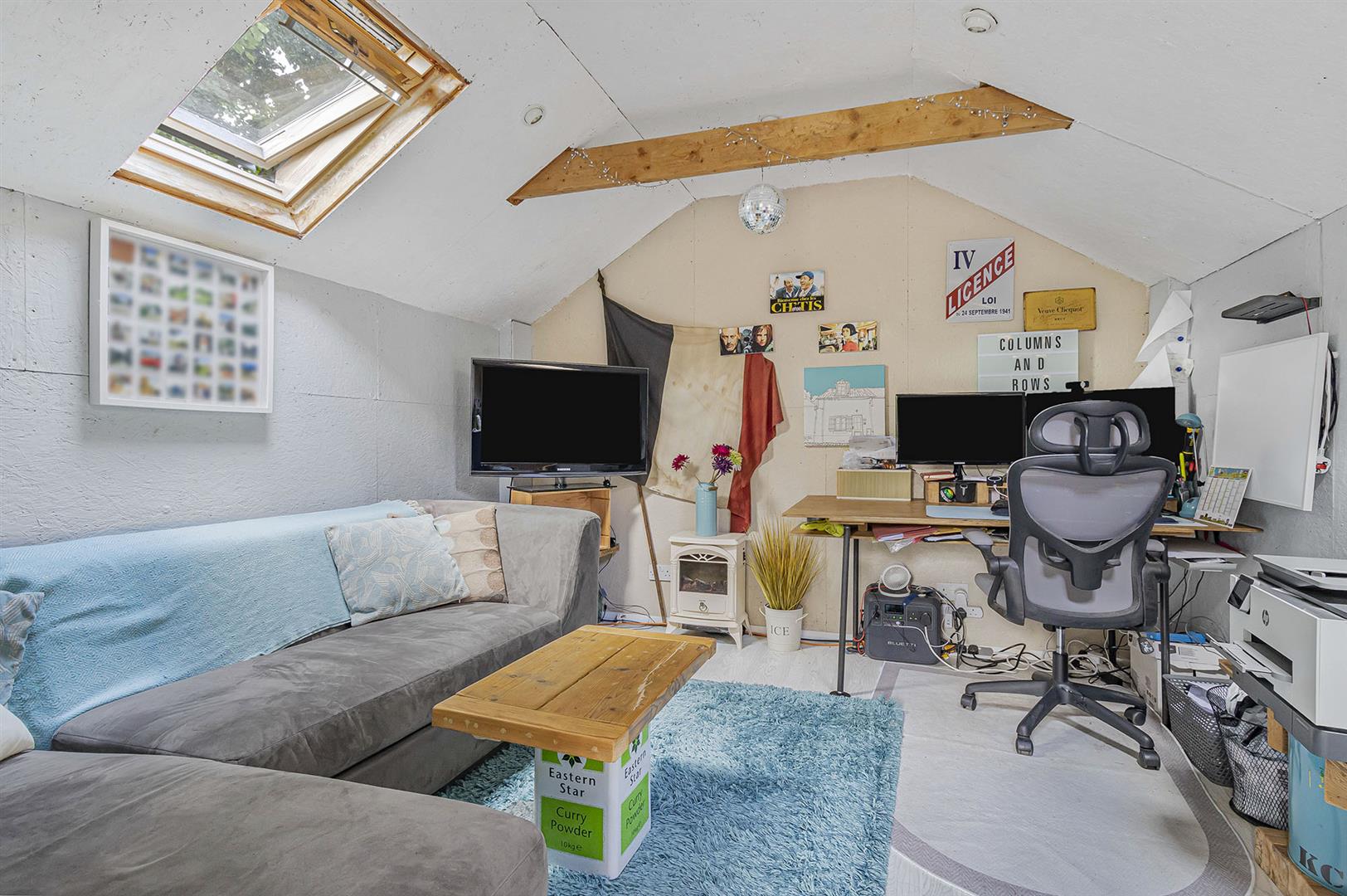 Velux window and storage.