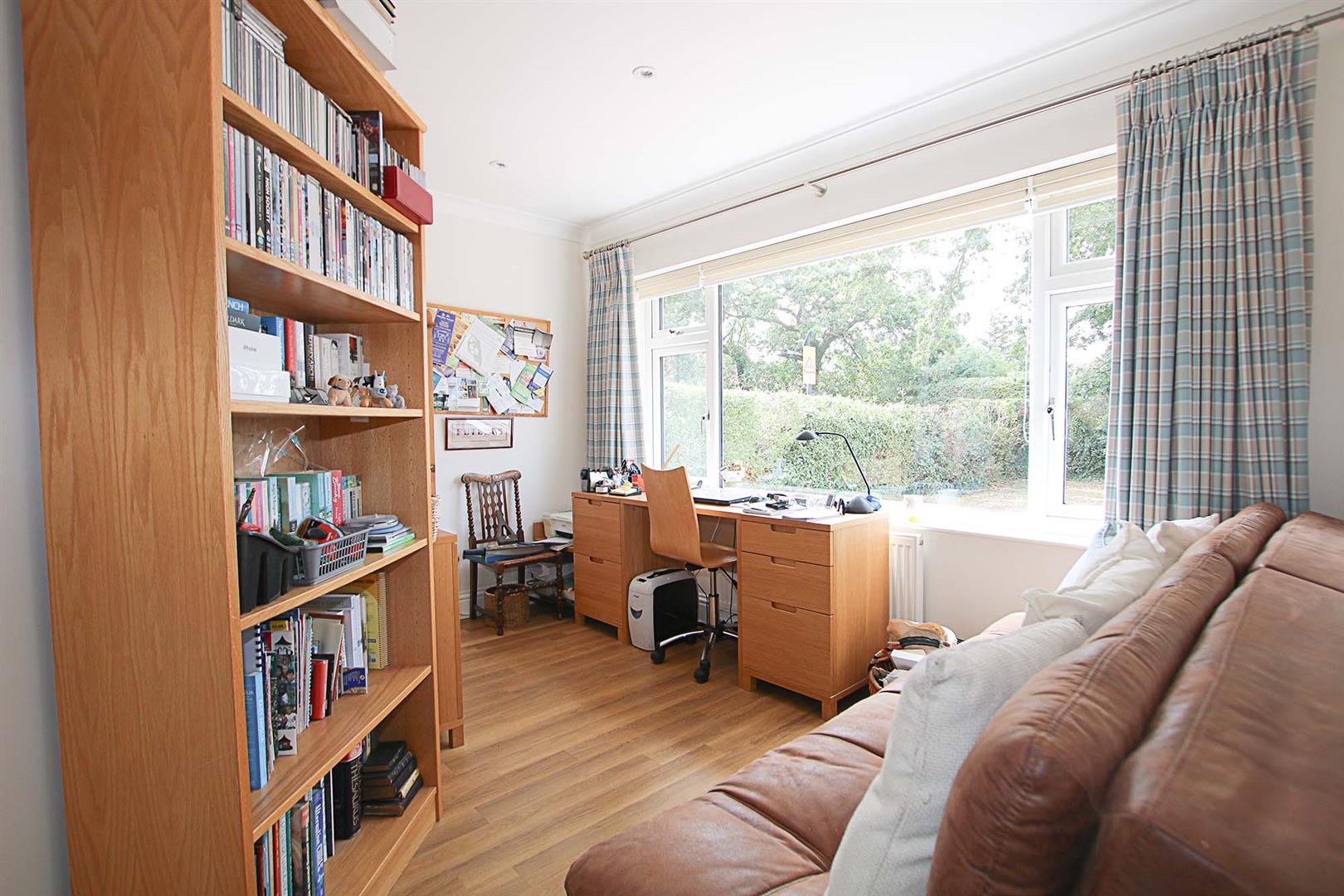 Enclosed front garden with extensive parking, garage and access through gate to rear garden.