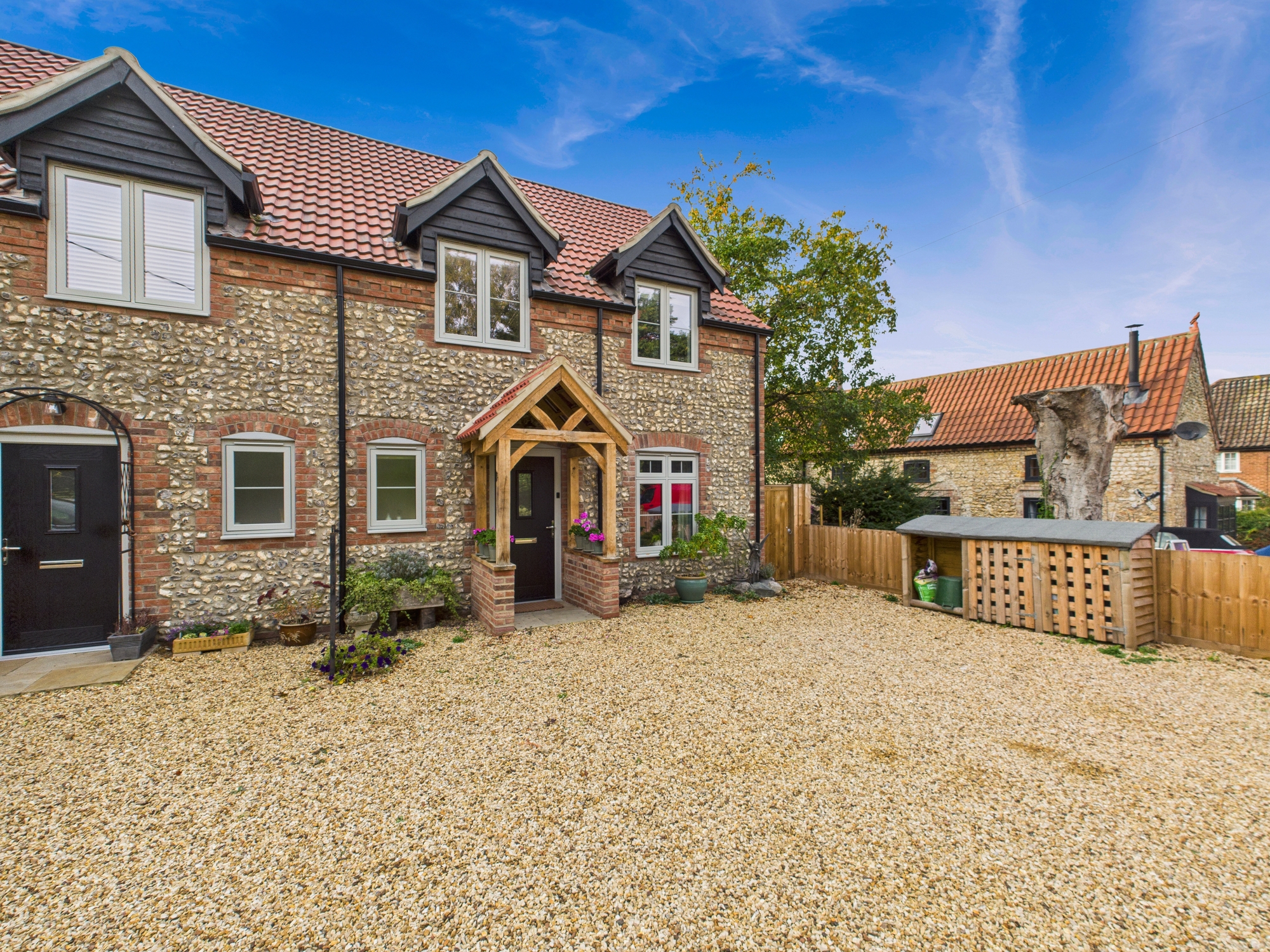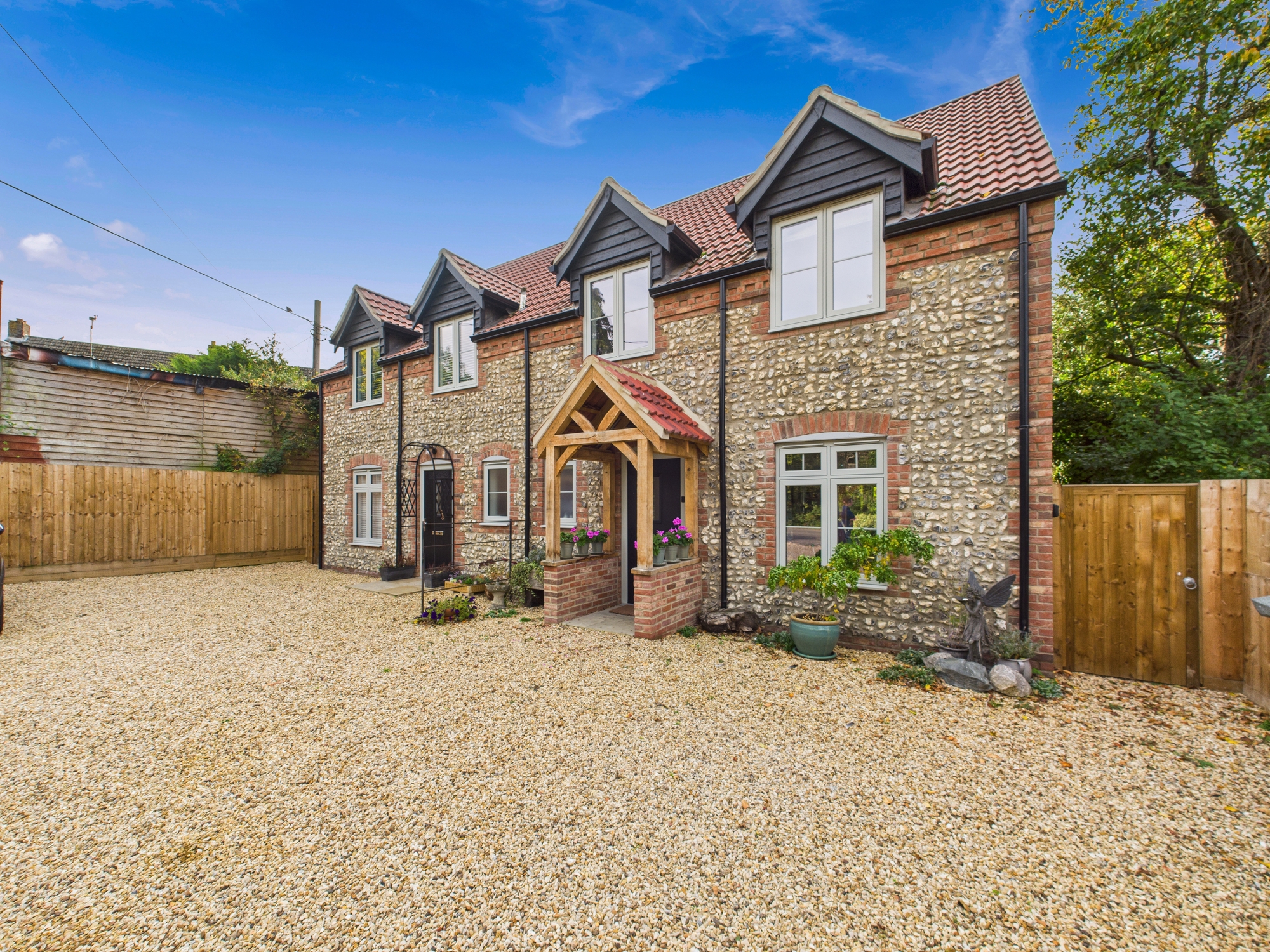 Built in 2024, this beautifully designed semi-detached home combines timeless cottage character with contemporary style. The flint-fronted exterior exudes charm, while the thoughtfully planned interior offers the very best of modern living. At the heart of the home is a stunning open-plan kitchen, dining, and family area — perfect for entertaining or relaxing. Bi-fold doors open seamlessly onto the enclosed rear garden, which features a stylish tiled canopy over the patio, creating an inviting outdoor living space for year-round enjoyment. The property offers three well-proportioned bedrooms, including a main bedroom with en-suite shower room, plus a modern family bathroom and a convenient ground-floor cloakroom. A separate utility room provides practical space for everyday living. To the front, there is ample driveway parking, completing this superb home. Situated in the desirable village of Whittington, the property enjoys a peaceful setting.