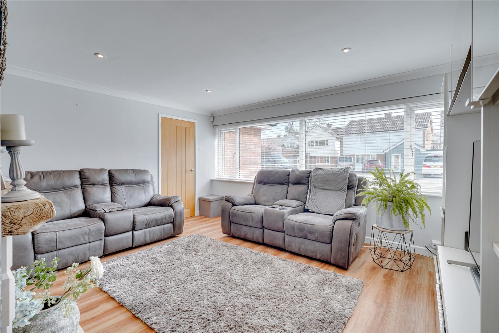Spacious, well presented living room with wooden flooring. Feature fireplace currently fitted with wood burner stove, stone hearth and inset beam mantel. Bespoke built-in unit providing ample storage. Large window to front aspect. Opening to kitchen/dining/lounge. Oak door to entrance hall.