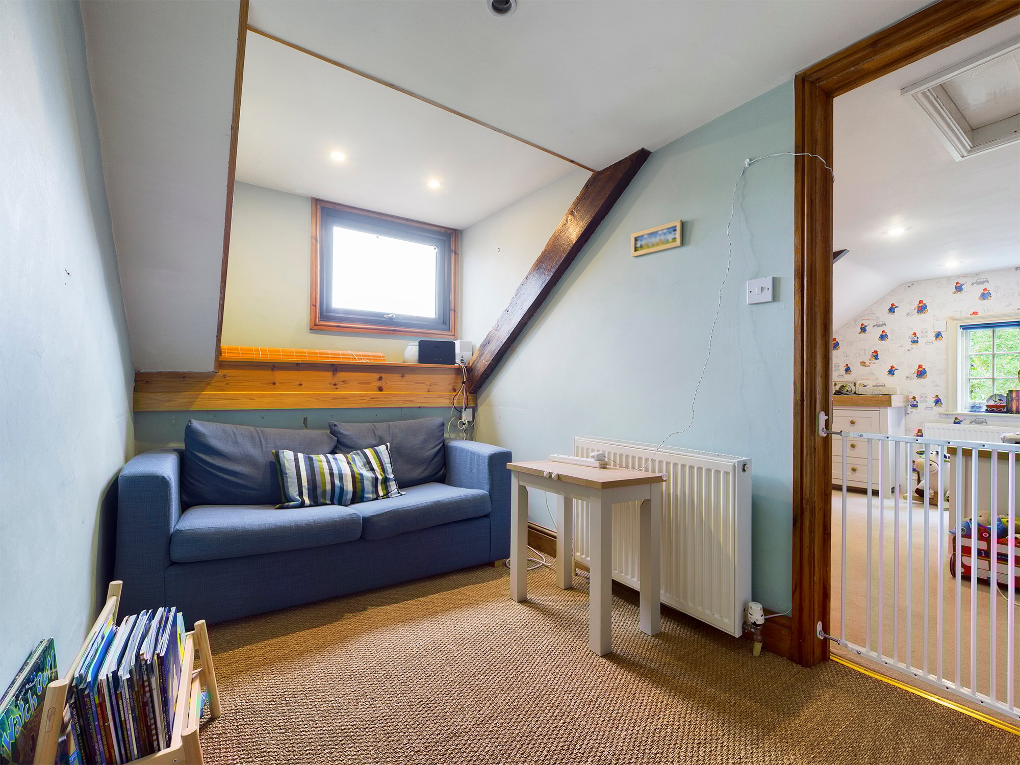 Roof light to the front, exposed beam over stairwell, further loft access, pine door to:-