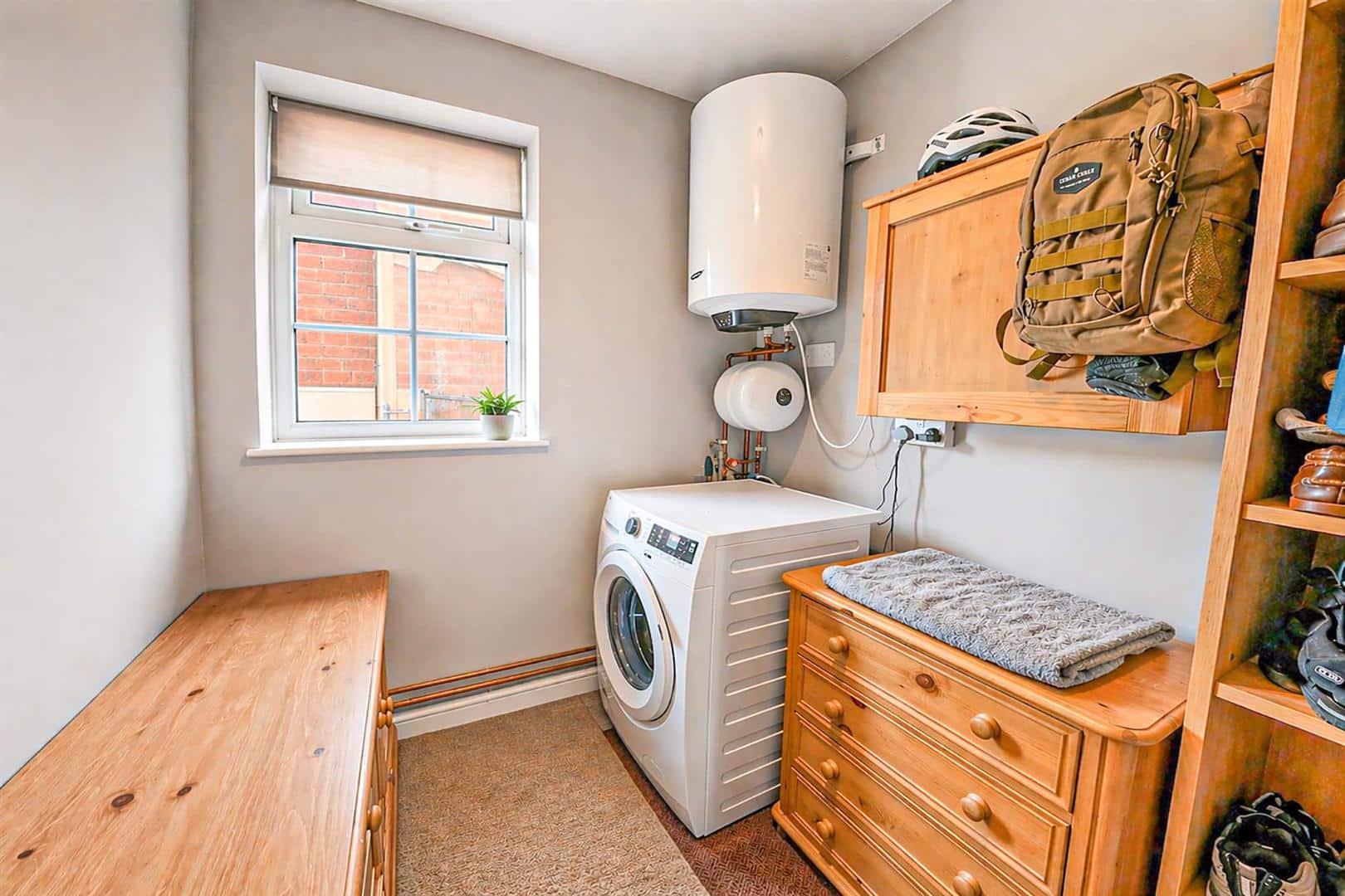 Generous room with space and plumbing for washing machine. Offering useful storage space. Window to the rear aspect. Door leading to the entrance hall.
