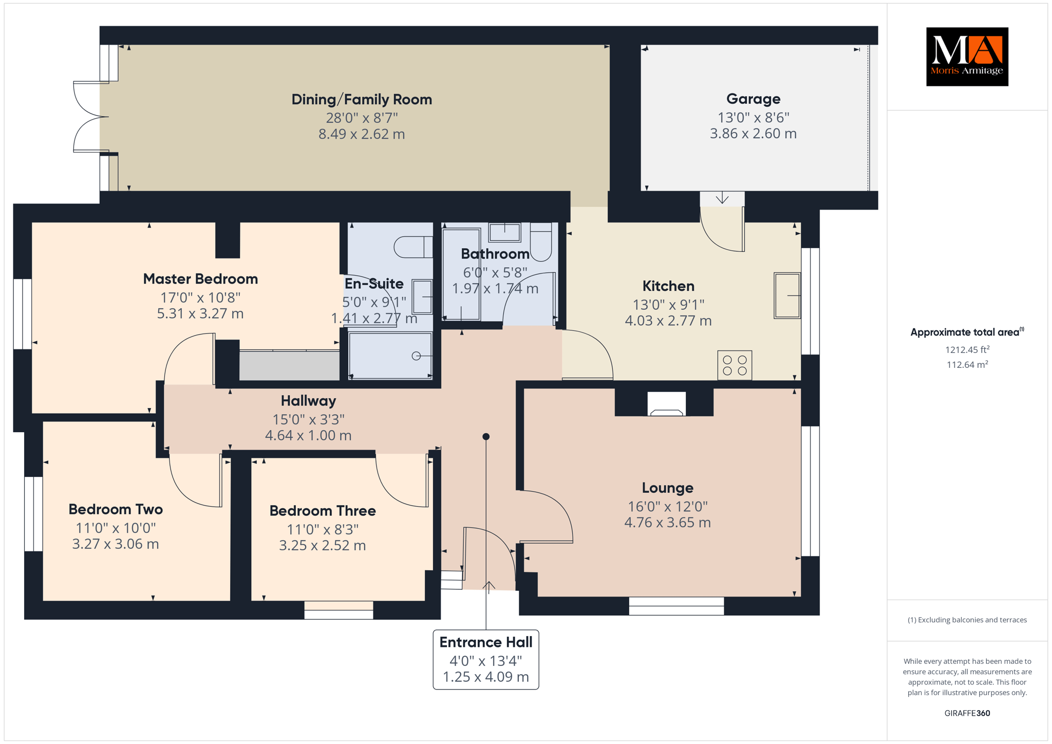 Two wall mounted upright radiators, tiled flooring, loft access, ceiling spotlights, doors to all rooms.