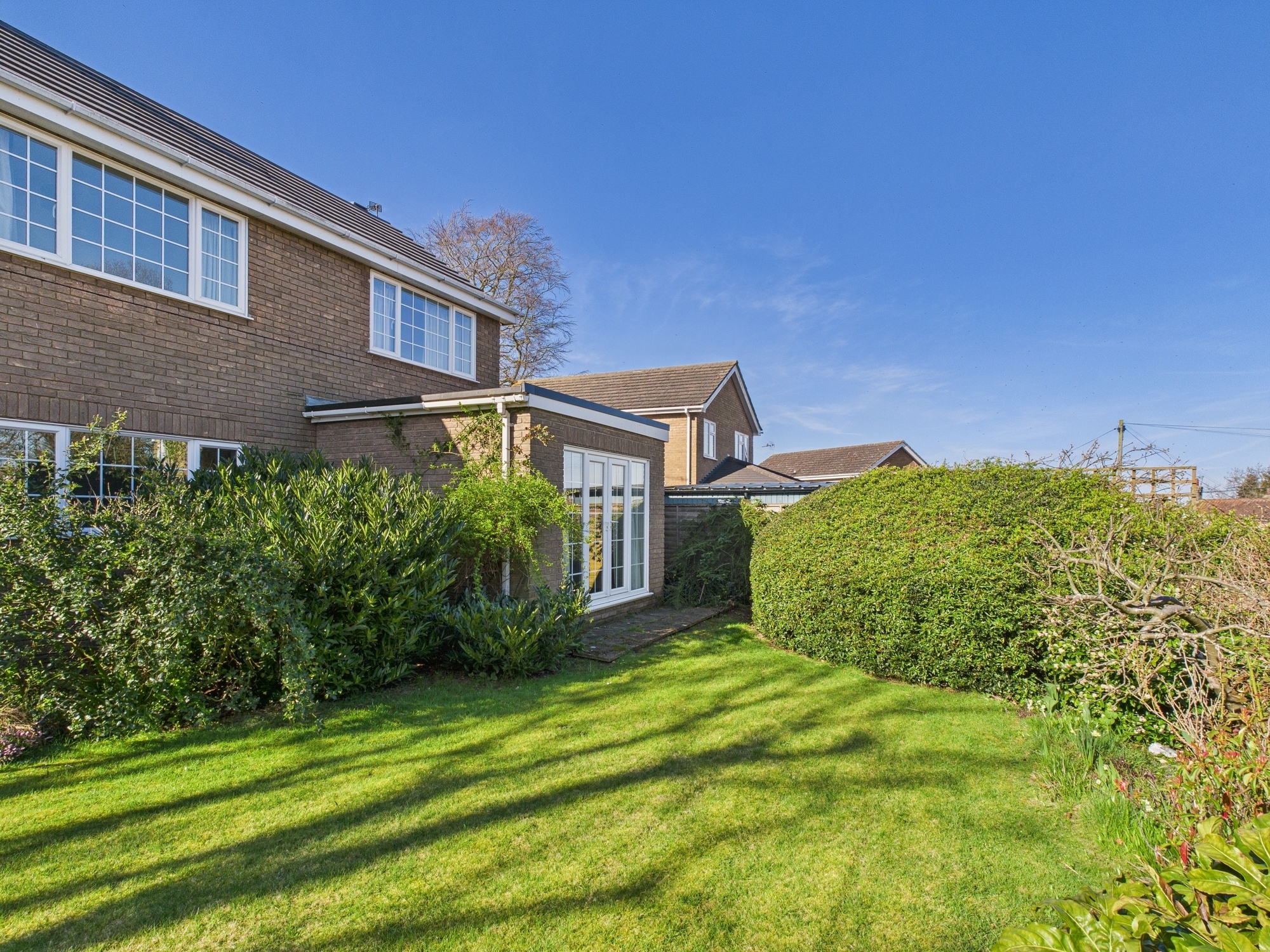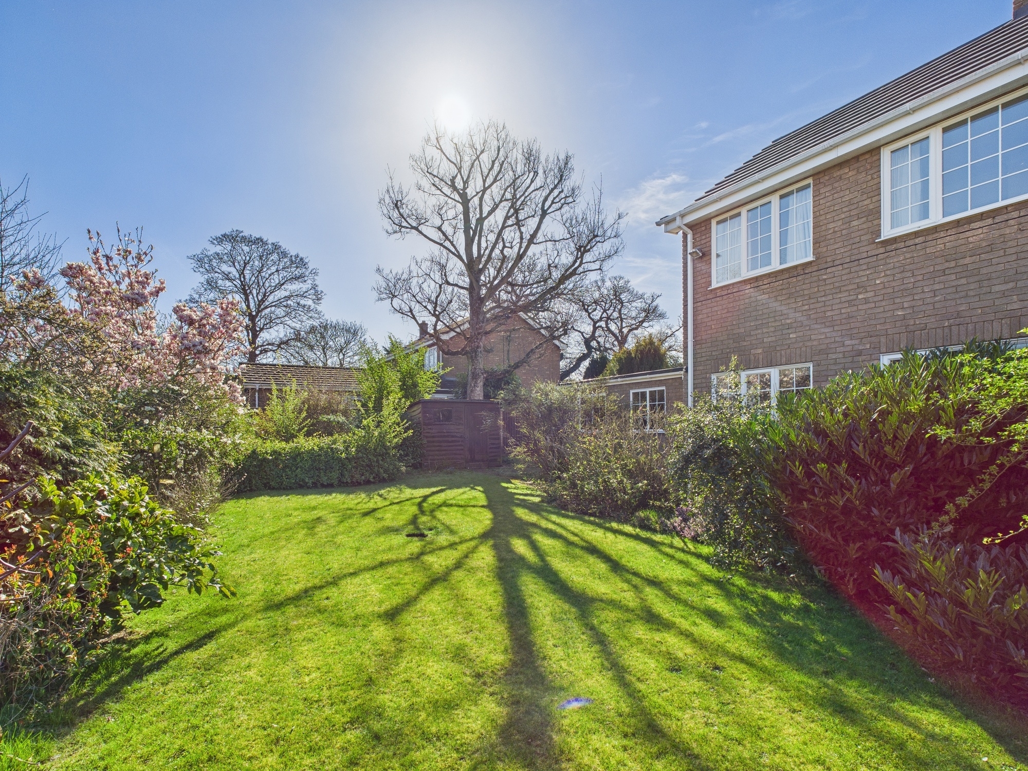 The gardens to the front have been well maintained, mainly laid to lawn with a range of flowers, bushes and shrubs to borders. The tarmac driveway provides off road parking and leads to the double garage. There is a further space to the side which leads round to the rear garden. Here it is also mainly laid to lawn with mature bushes and shrubs along with a wonderful magnolia. There is also a wooden storage shed.