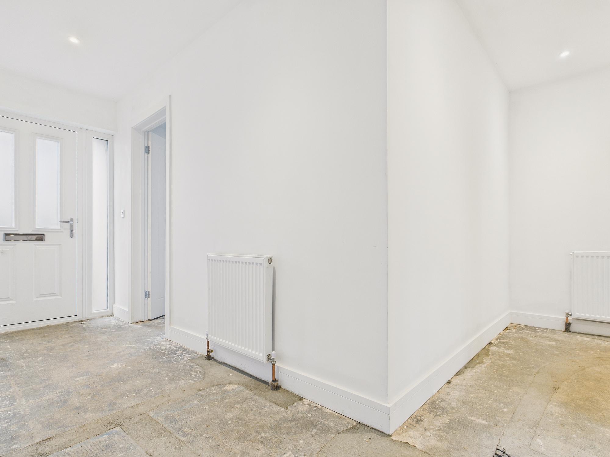 uPVC double glazed windows to front, wall mounted single panel radiators, door to: