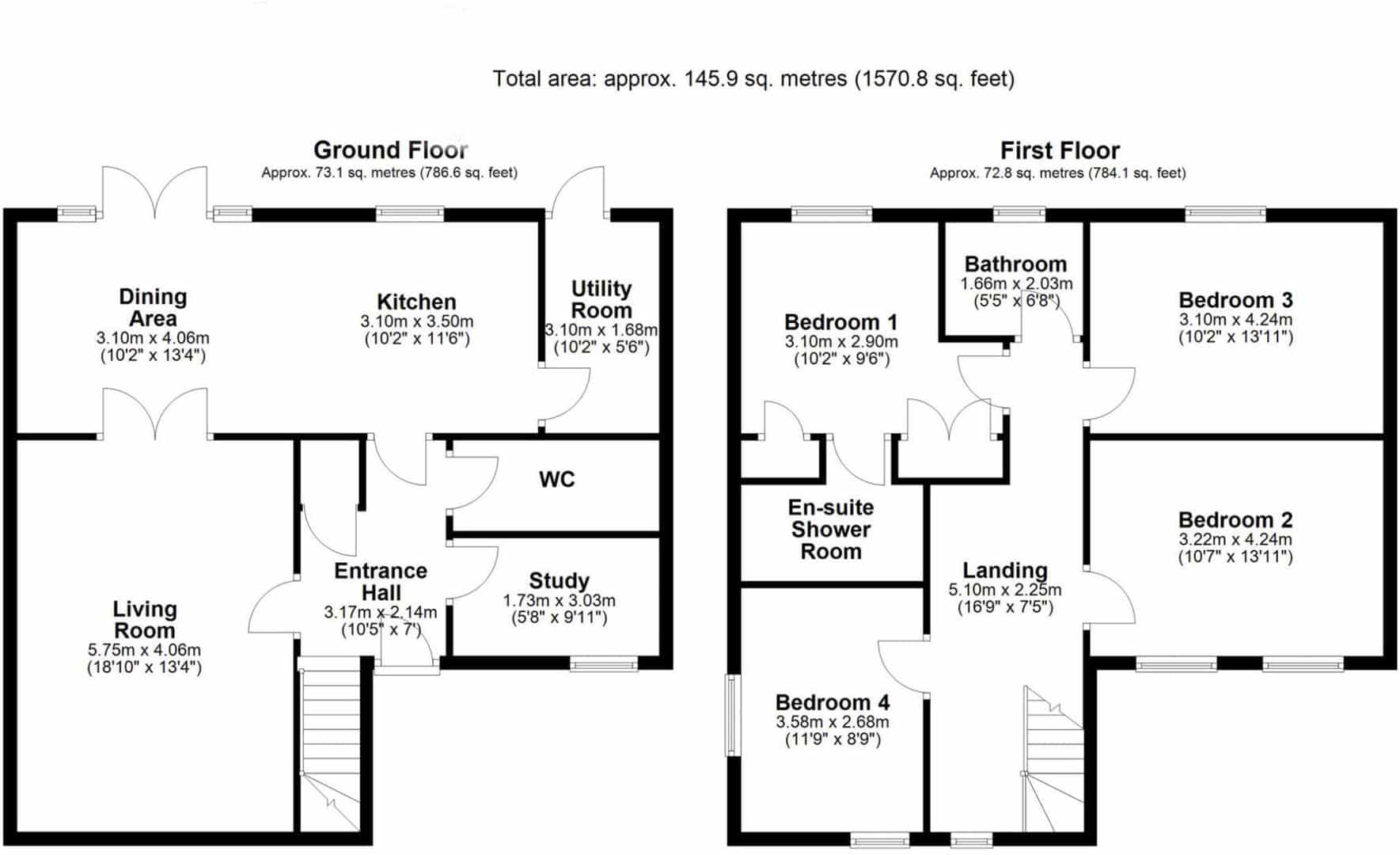 Bedroom 2 3.22m x 4.24m (10'6" x 13'10")