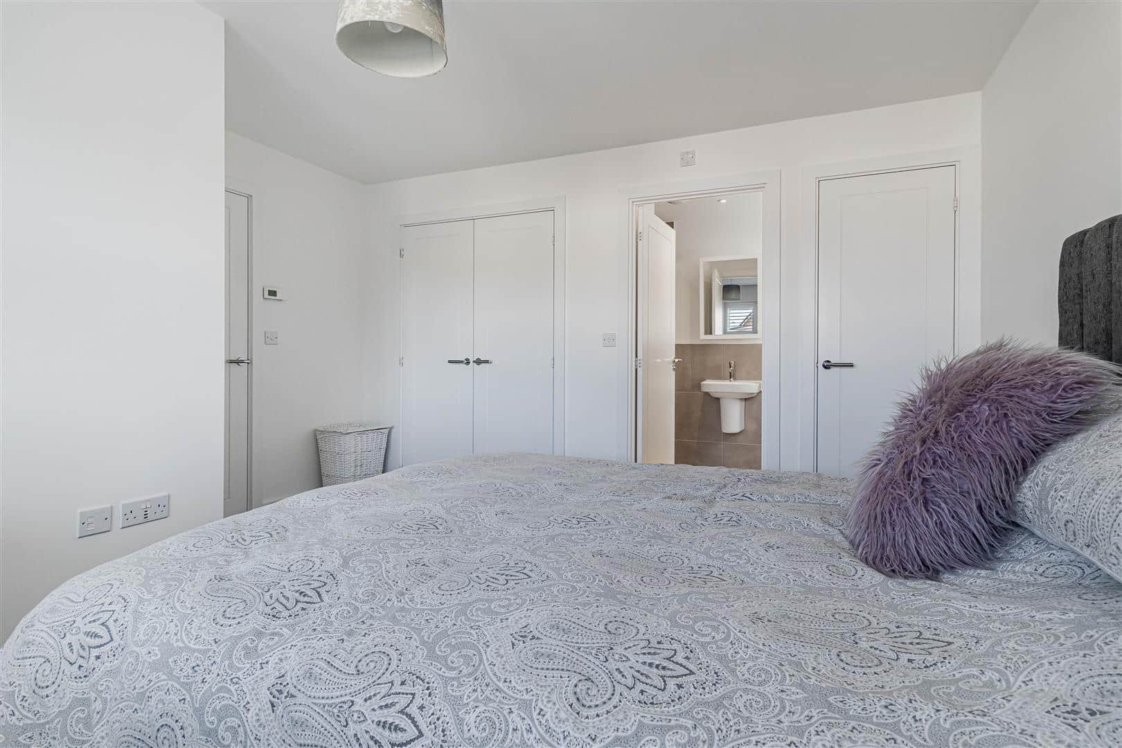 Spacious, light bedroom with window to the front aspect. Built-wardrobes and further storage cupboard. Radiator. Doors leading to the en suite and landing.