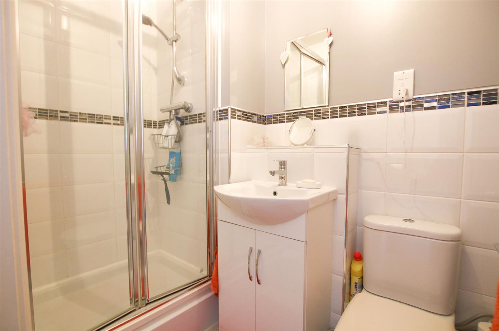 Comprising shower cubicle, low level WC and wash hand basin, part tiled walls, radiator, shaver point, extractor fan.