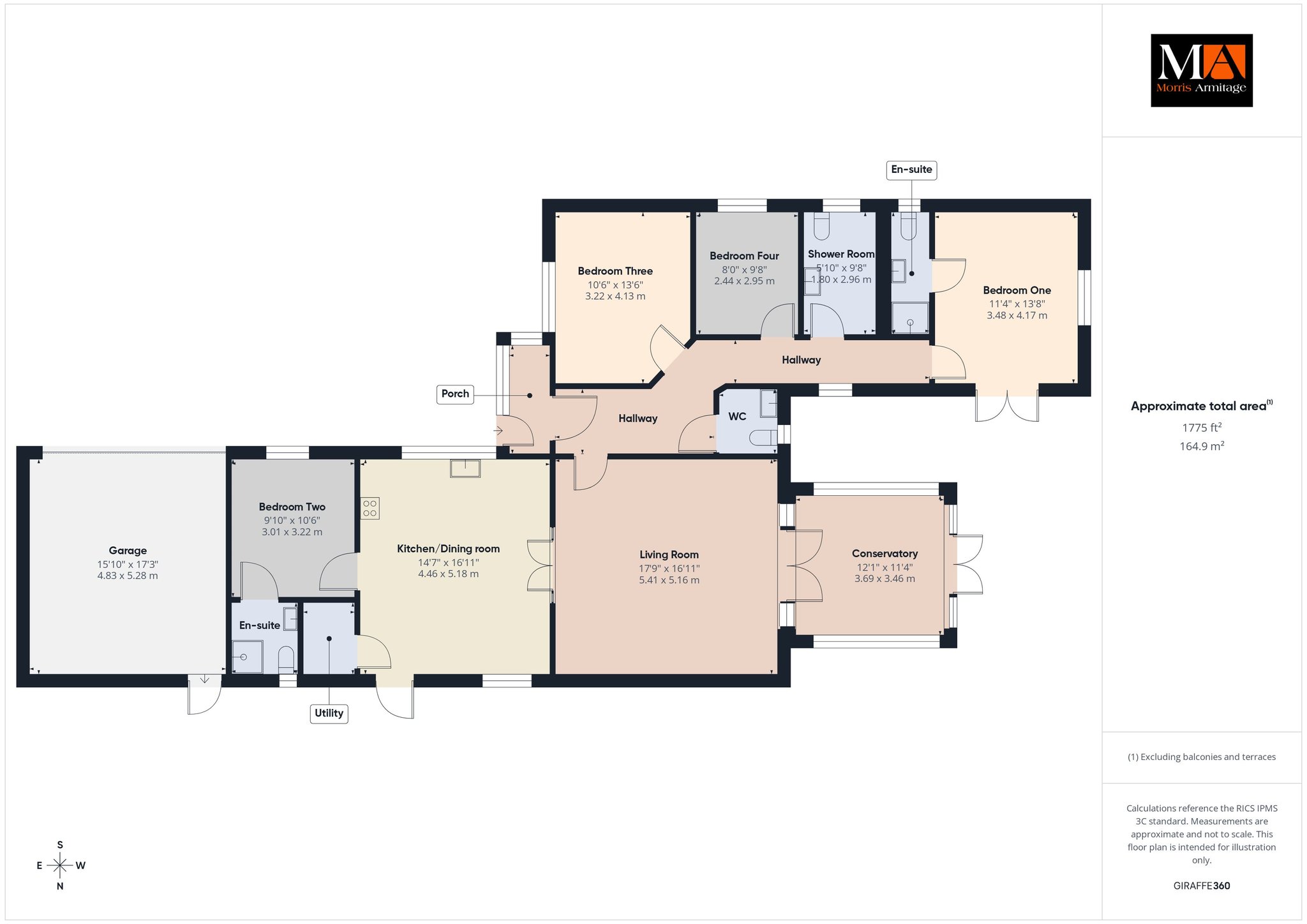 Living Room 17’9” x 16’11” (5.41m x 5.16m)