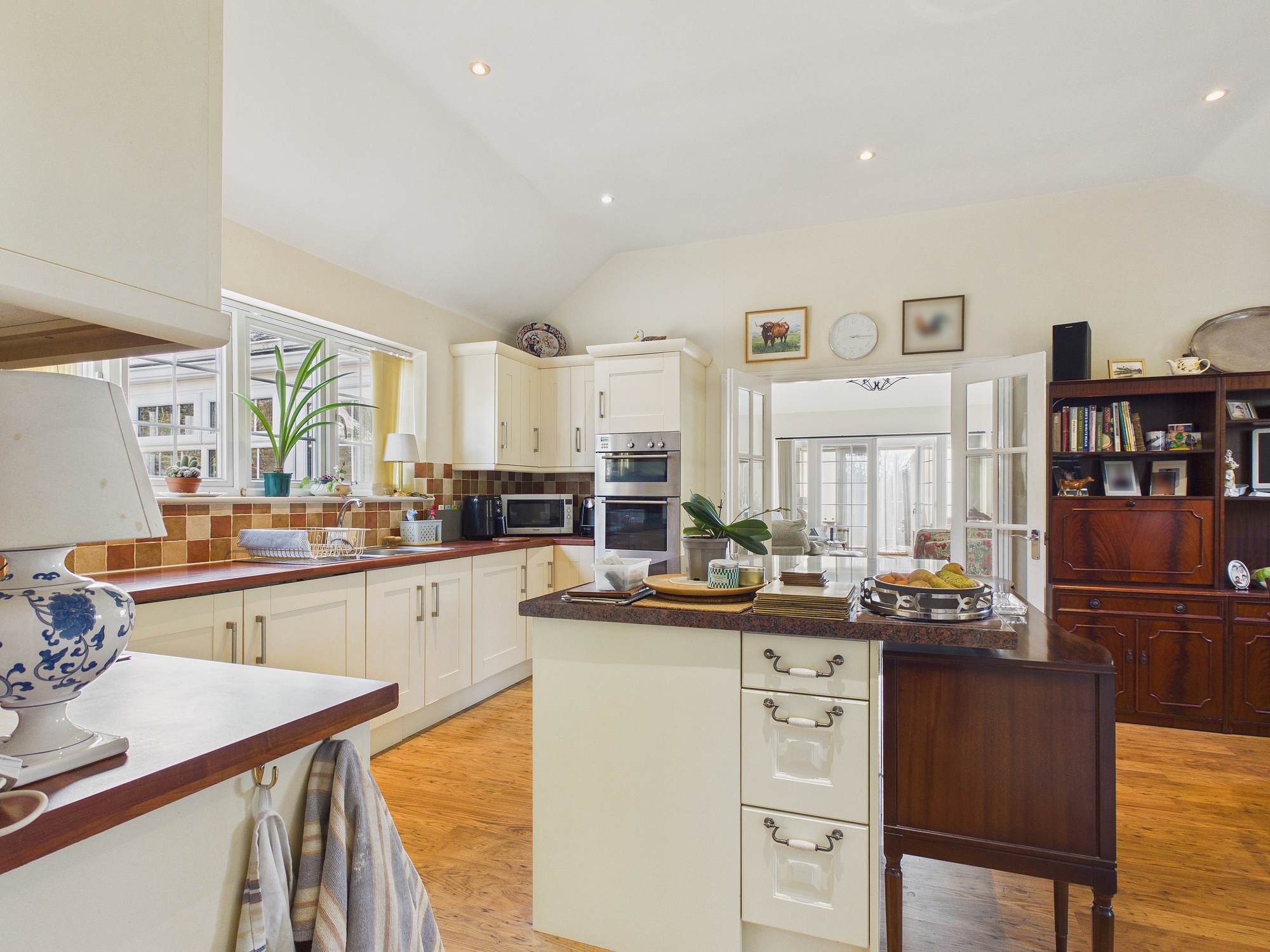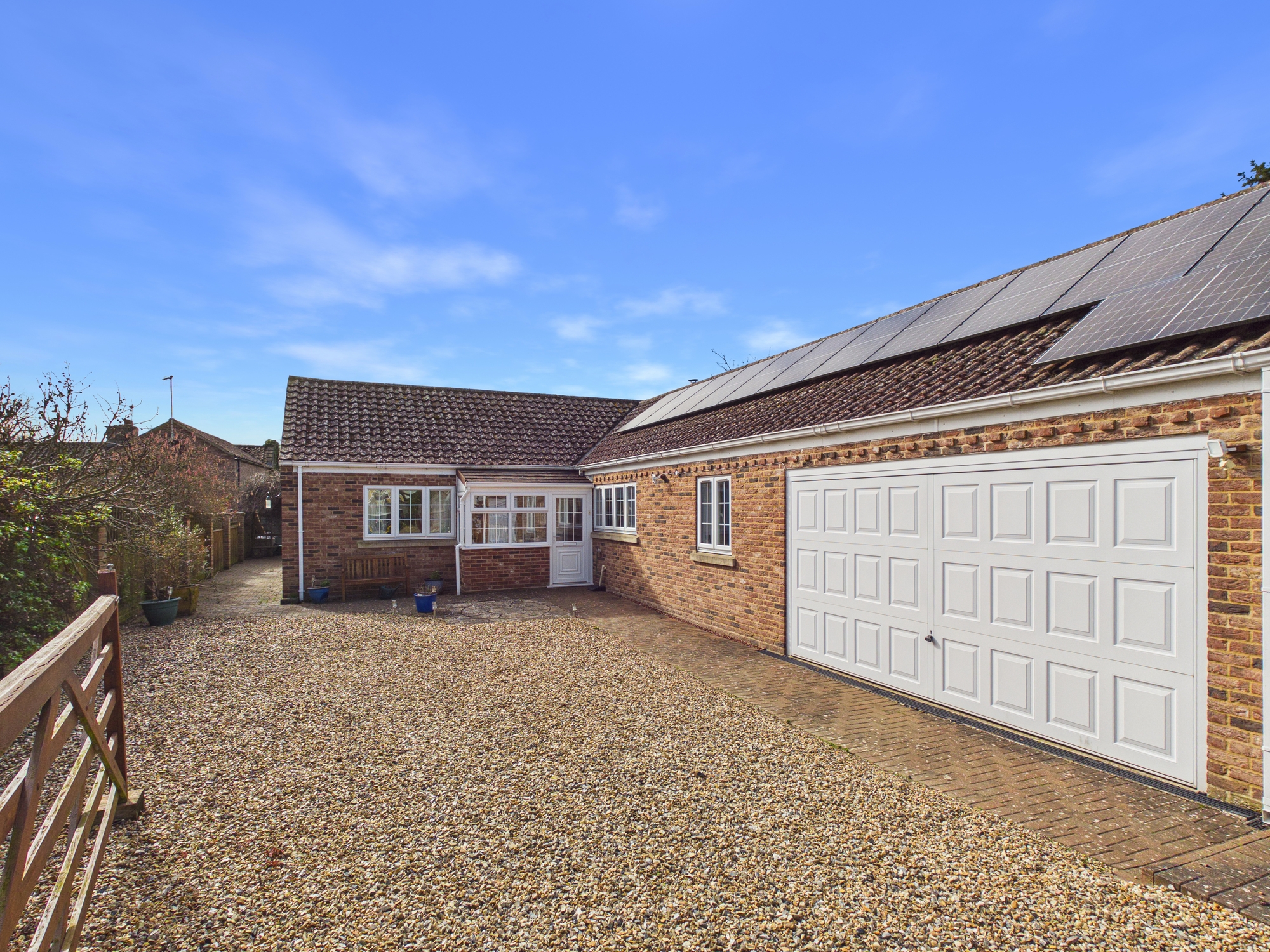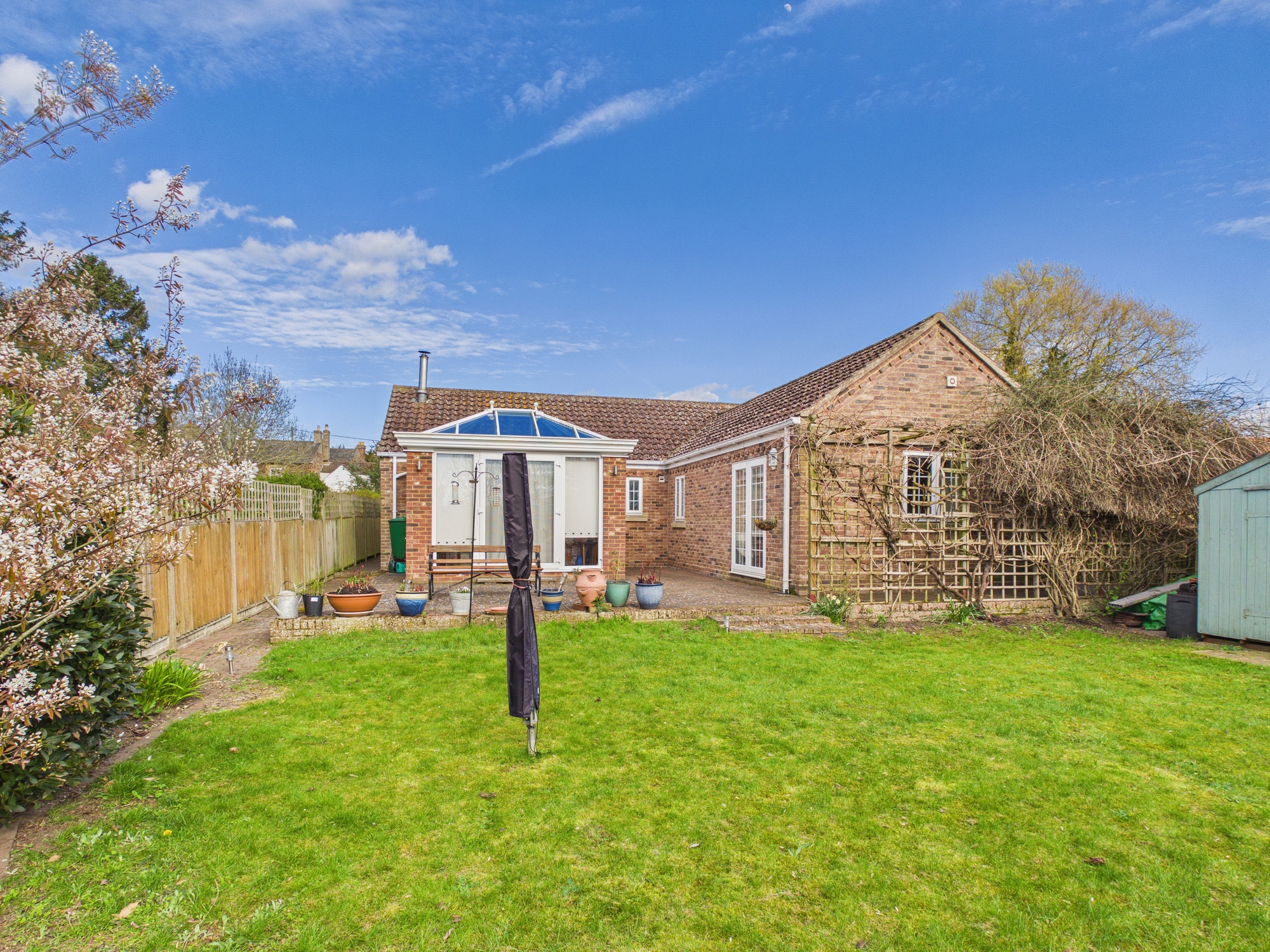 Tucked away from everything and yet situated in the absolute centre of this desirable village, this substantial, detached,  and individually designed property boast an exceptional level of 4-bedroom accommodation over one floor. Originally constructed around twenty years ago, both its design and finish have been carefully thought out, creating a more contemporary feel than most bungalows would normally offer. Positioned centrally, the main sitting room extends to almost 18ft in size and this enjoys a vaulted ceiling and a wood burning stove.  Leading from this is a conservatory which leads directly on to the rear garden. The open-plan kitchen/dining room measures approximately 17ft in size and produces a very practical, social area in which to dine and entertain, benefiting further from an adjoining utility space. A long hallway extends throughout the property providing access to 3 of the bedrooms along with the main bathroom. Each of these bedrooms are well proportioned with the largest enjoying fitted wardrobes and an en-suite. Additionally, a further bedroom can be found to the front which also has its own en-suite shower room. Outside, the space is equally as impressive especially with exceptional levels of parking for vehicles large and small, a 17ft double garage and maturing private gardens that provide lawn, patios and summerhouse. A rare and quite enviable home both on the inside and out whilst being only a short walk from the generous level of amenities that this Village boast. Early viewing is highly recommended.