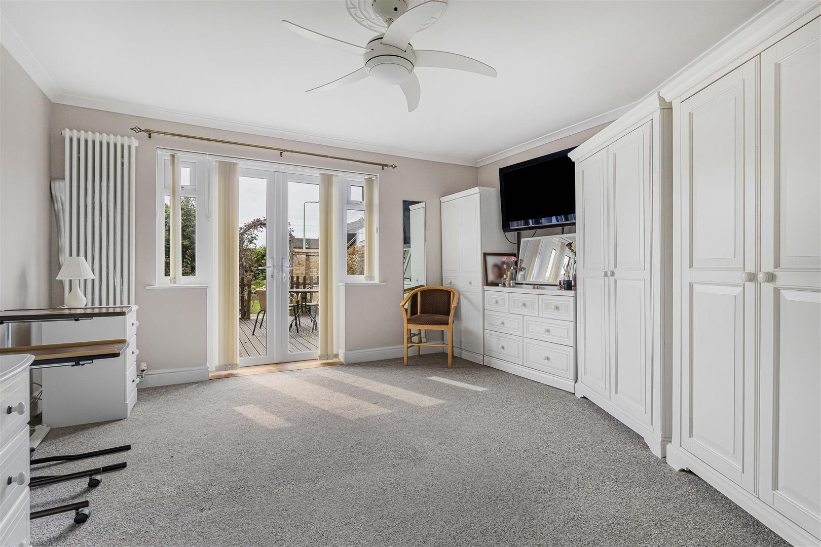 Generous double bedroom with french doors leading to the rear garden. Doors leading to the en suite wet room and living/dining room.