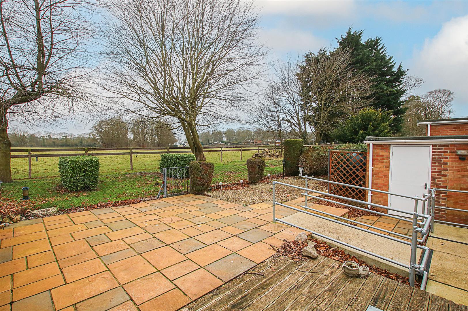 Enclosed low maintenance rear garden with extensive paved patio area, outdoor lighting and marvellous views over looking the open fields.