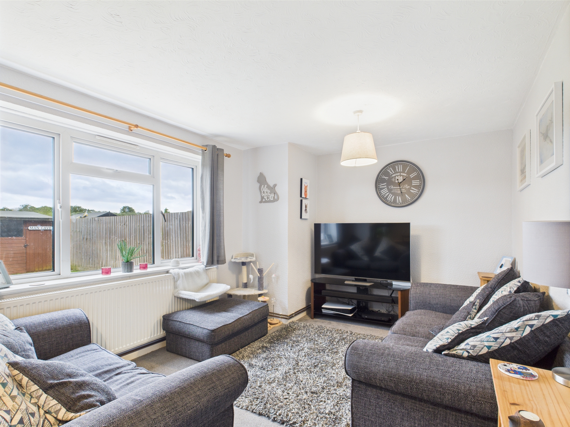The front of the property is laid to lawn with pathways shared with the neighbouring properties to the front entrance and side lobby. The rear garden is mainly laid to lawn with a patio and wooden storage shed inset, enclosed by fencing with parkland views beyond. There is allocated parking for one vehicle.