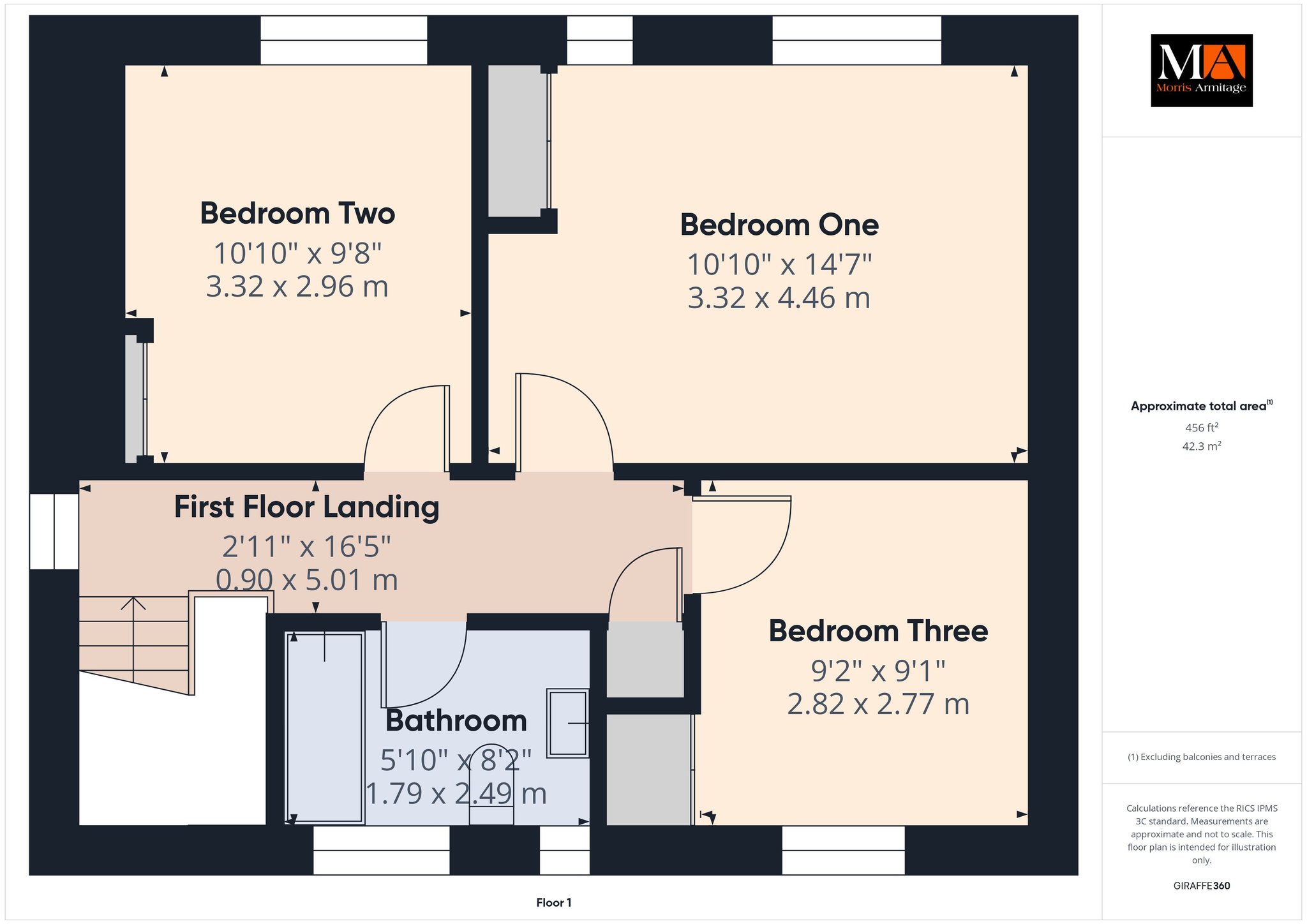 Bedroom One 14’7” x 10’10” (4.46m x 3.32m)