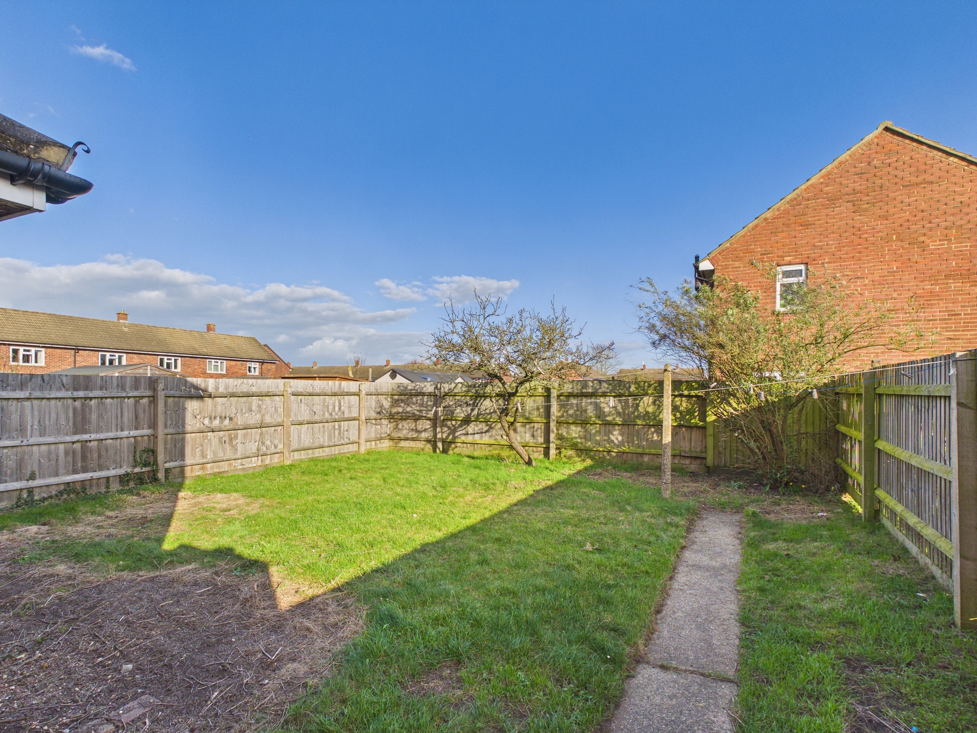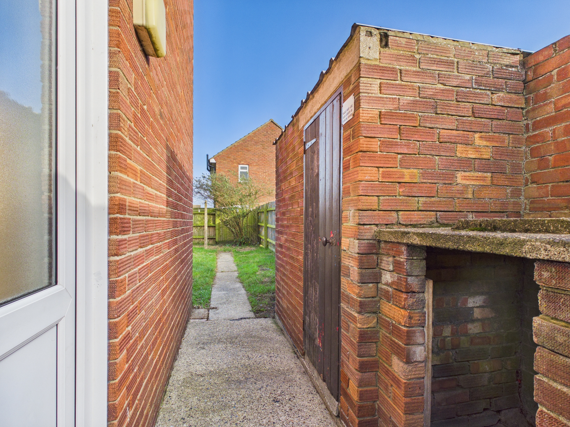 From the front, to the side of the property there is a personal gate which leads through to the rear garden. Here it is mainly laid to lawn with a brick outbuilding inset, all enclosed by fencing. There is one allocated parking space within the parking area to the side.