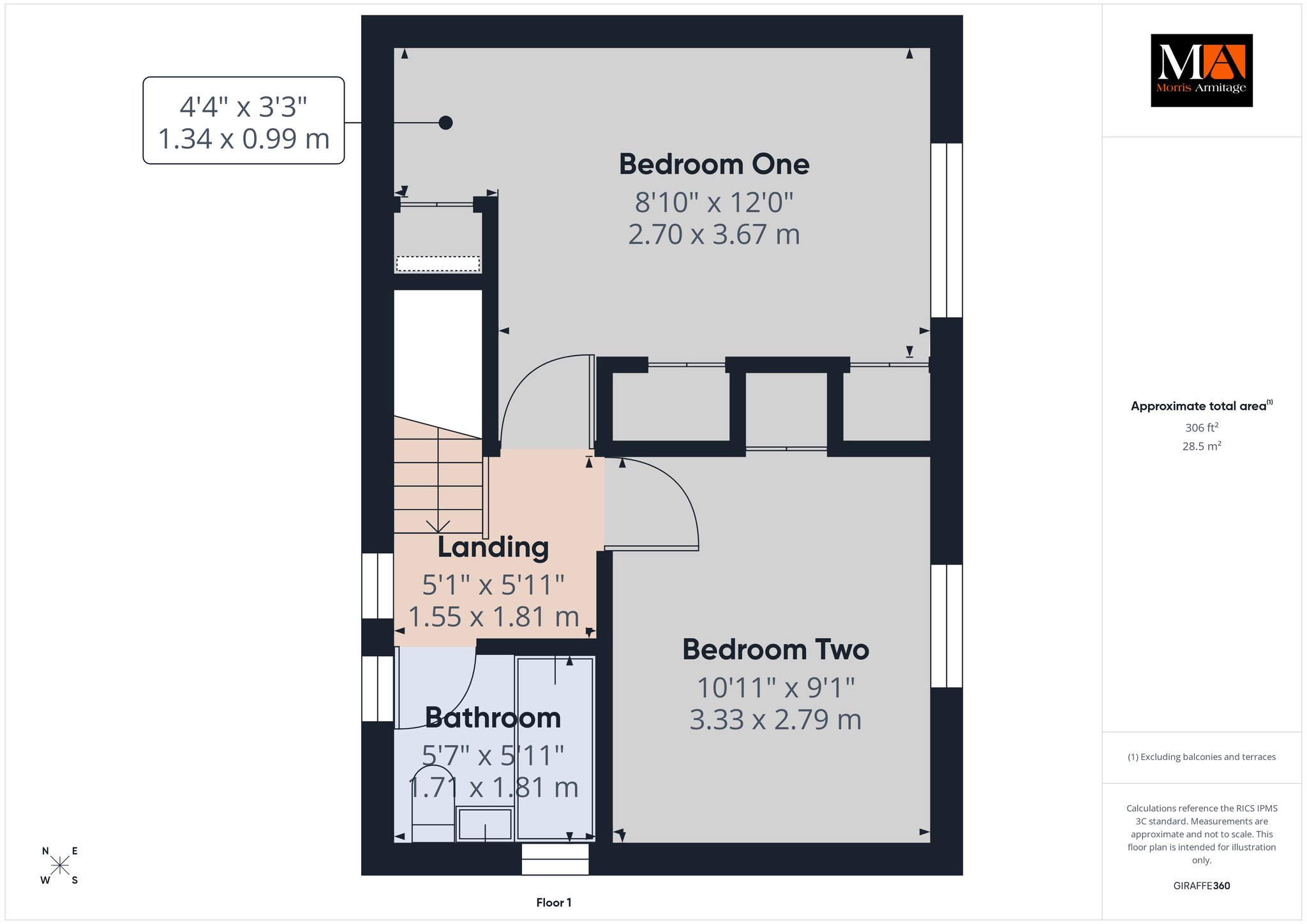 Bedroom Two 10’11” x 9’1” (3.33m x 2.79m)
